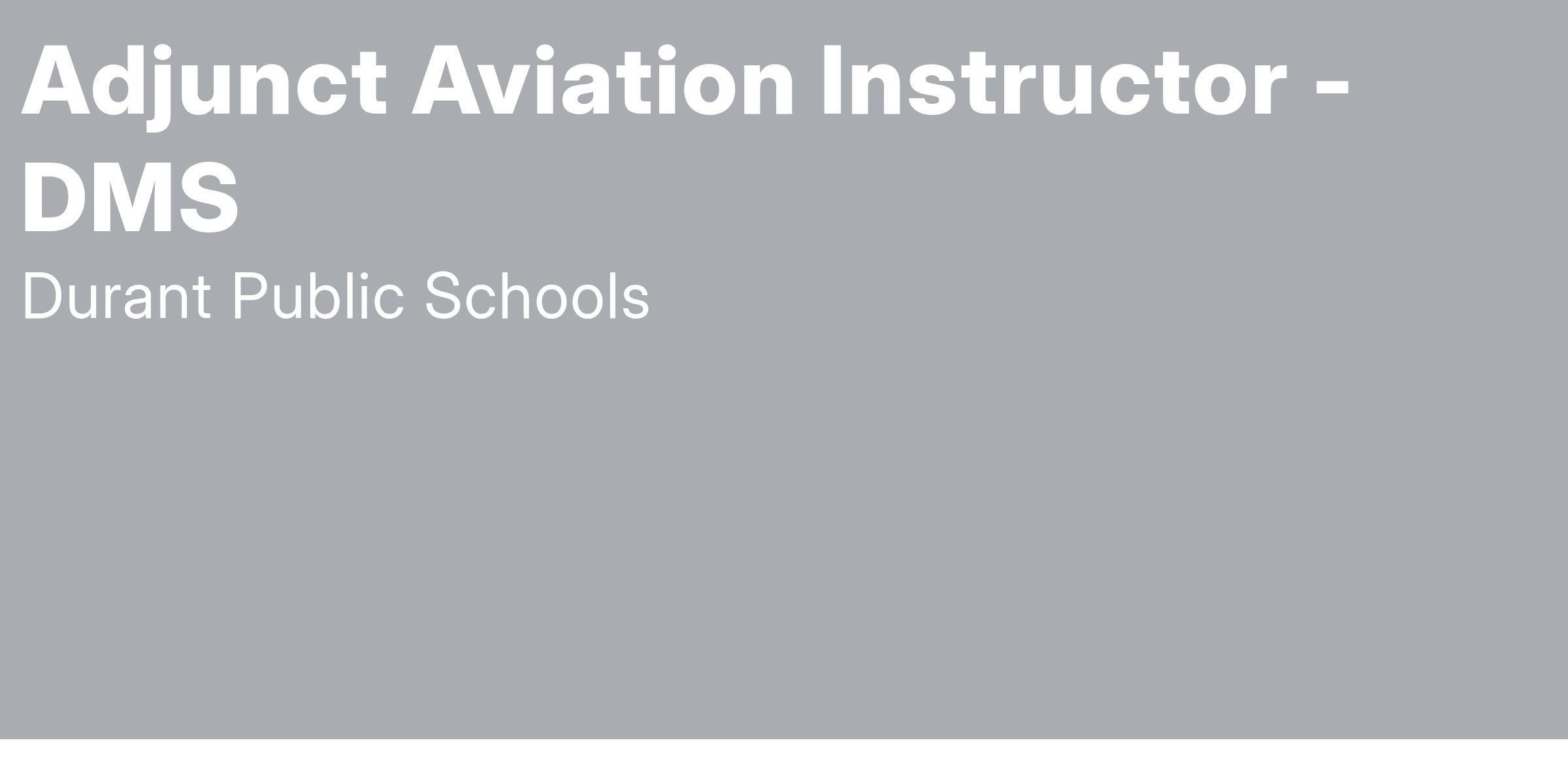 Durant Public School is accepting applications for the position of Adjunct Aviation Instructor for the 2025-2026 school term.