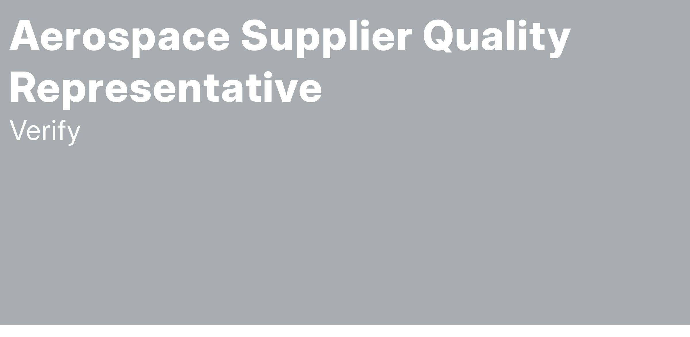 Position: Aerospace Supplier Quality Representative