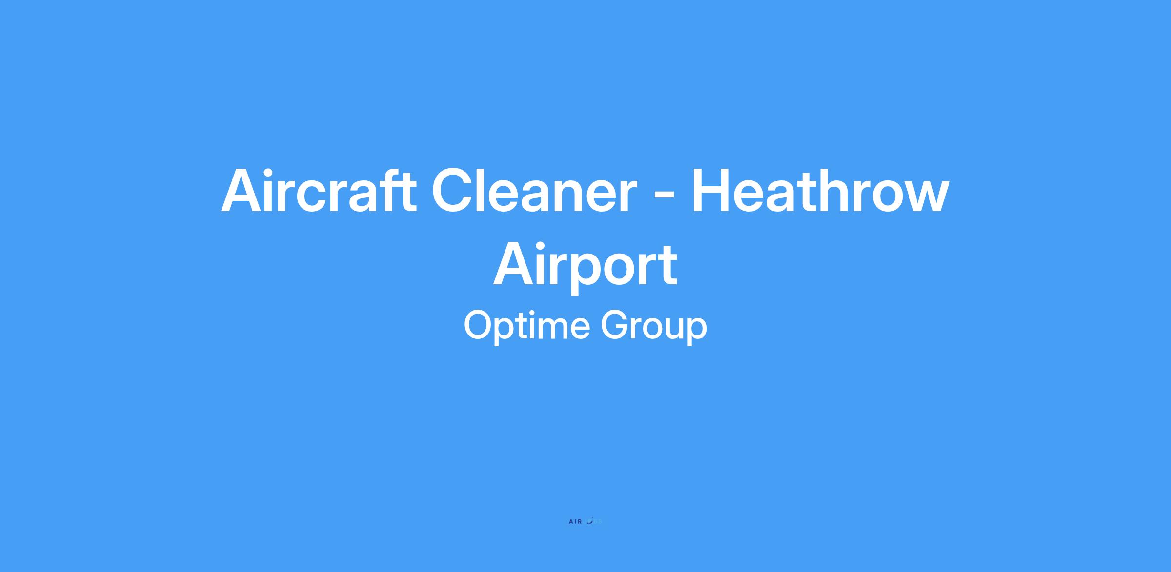 DescriptionOptime Group are proud to be recruiting Aircraft Cleaners for a prestigious client at Heathrow Airport. This is a very enjoyable role with a great company offering excellent conditions and facilities.