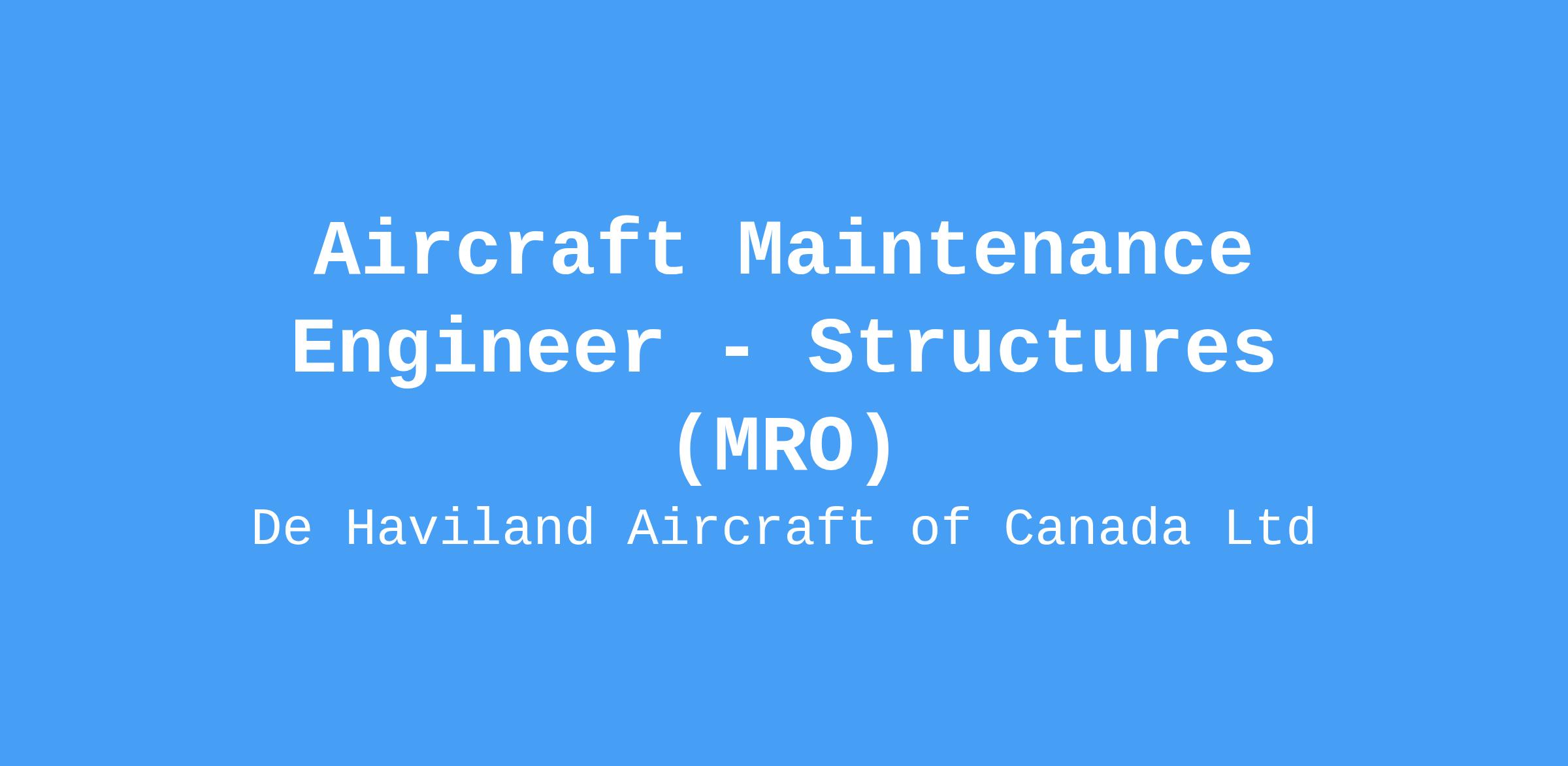 Experience with all De Havilland Aircraft of Canada products consider an asset