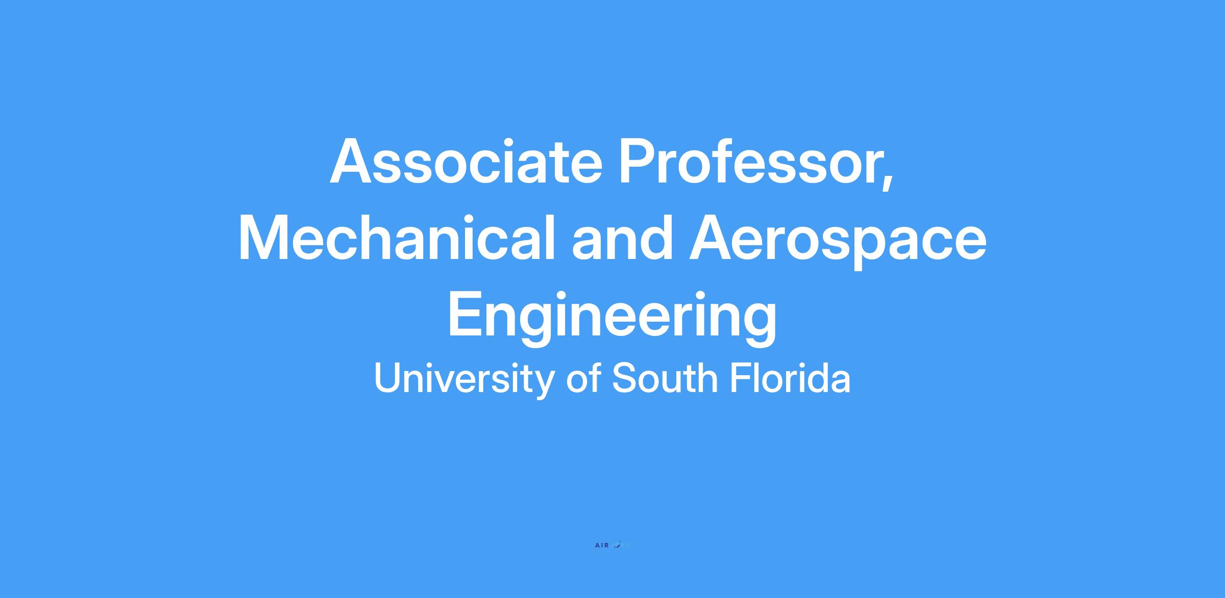The Department of Mechanical and Aerospace Engineering at the University of South Florida invites applications for tenured/tenure-track faculty positions in Mechanical and Aerospace Engineering. While outstanding candidates from all areas of Mechanical and Aerospace Engineering are encouraged to apply, particular consideration will be given to applicants with expertise in one or more of the following areas: (1) Computational Supersonic and Hypersonic Flows, (2) AI, Autonomy, and Robotics, (3) Drones and Urban Air Mobility, (4) Advanced Manufacturing, (5) Aerospace Materials, and (6) Energy Systems. Applicants specializing in materials science without a clear, strong connection to aerospace applications are discouraged from applying.