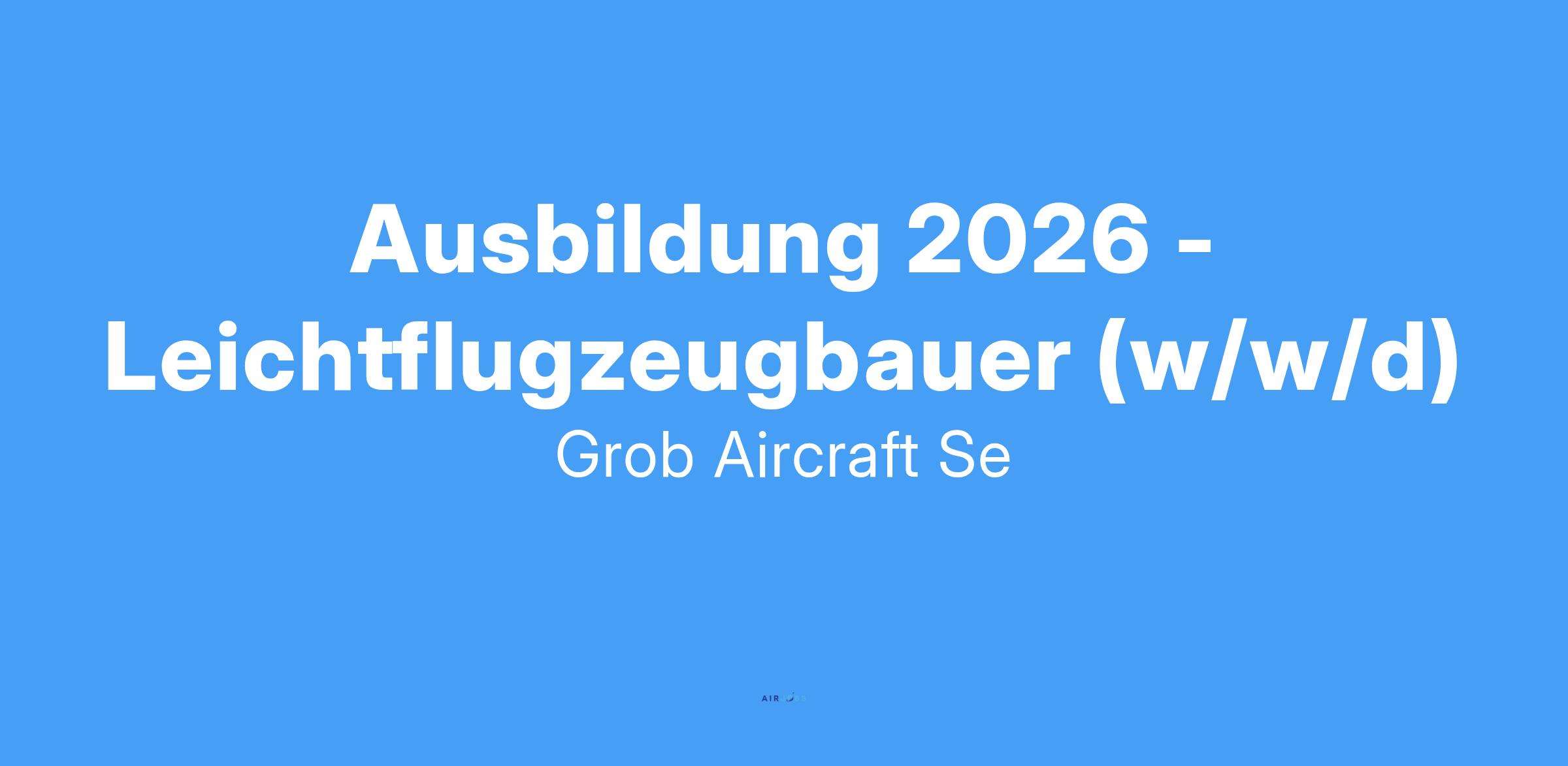Ausbildung 2026 - Leichtflugzeugbauer (m/w/d)Für das Ausbildungsjahr 2026 suchen wir Dich! Starte deine Ausbildung als Leichtflugzeugbauer (m/w/d) - bei Grob Aircraft! Mit über 40 Jahren Erfahr