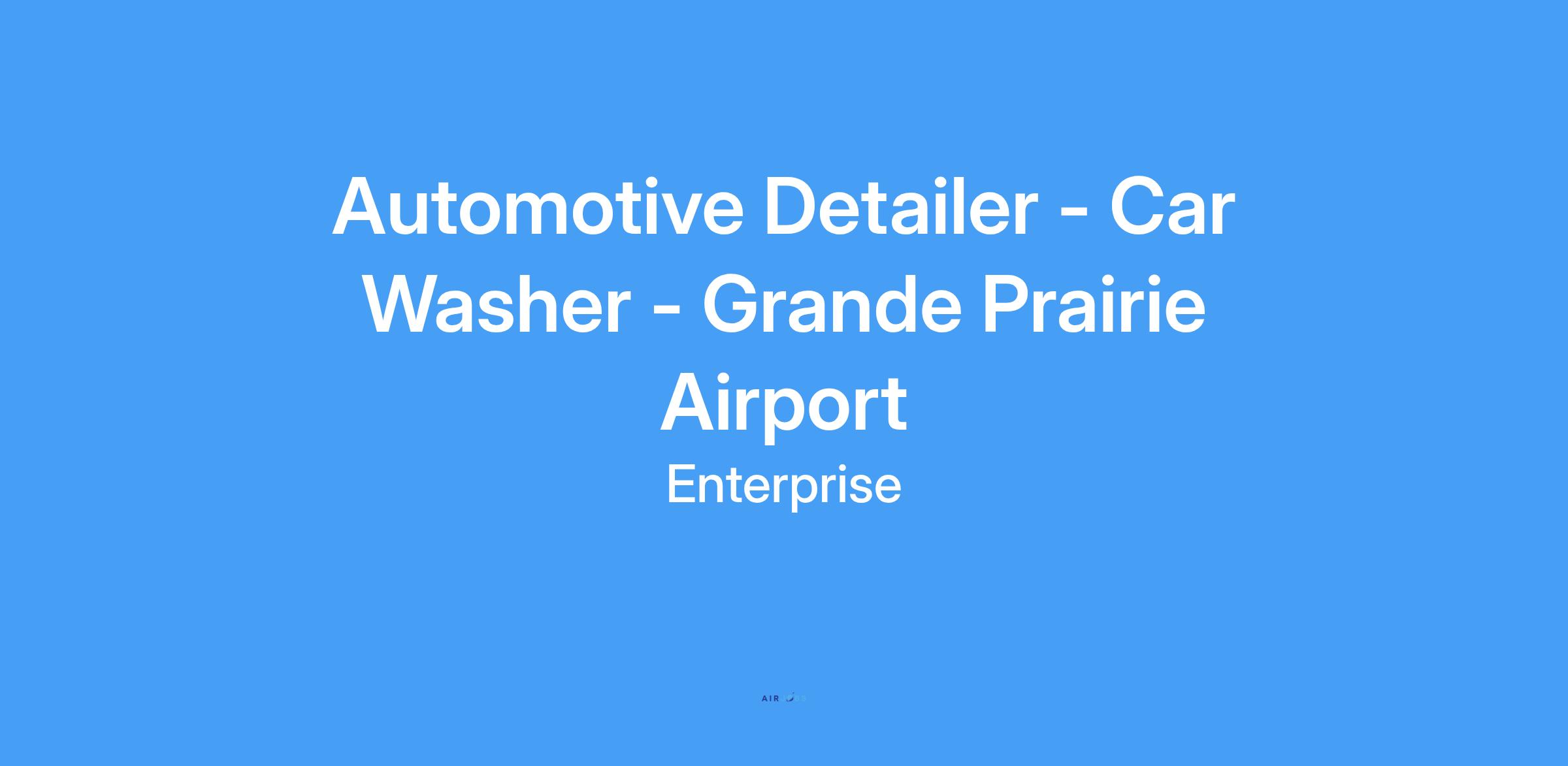 Enterprise Mobility is seeking a responsible, dedicated person to join our team as a full time Automotive Detailer. This position pays $20.00 / hour and is located at Grande Prairie Airport - 10610 AIRPORT DRIVE GRANDE PRAIRIE, AB T8V 7Z5