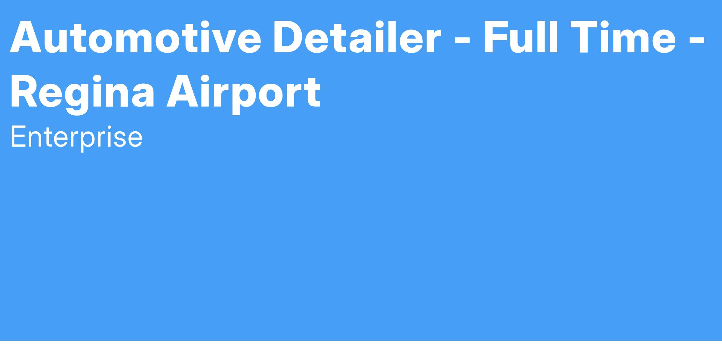 Enterprise Mobility is seeking a responsible, dedicated person to join our team as a Full Time Automotive Detailer. This position pays $18.00 / hour and is located at 5201 REGINA AVE; REGINA, SK S4W 1B3.