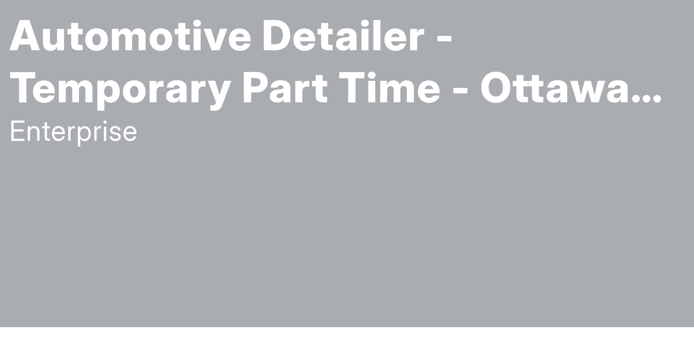 Enterprise Mobility is seeking a responsible, dedicated person to join our team as an Automotive Detailer. Opening available at the following branch location: 1003 AIRPORT PARKWAY PVT. GLOUCESTER, ON K1V 9B4