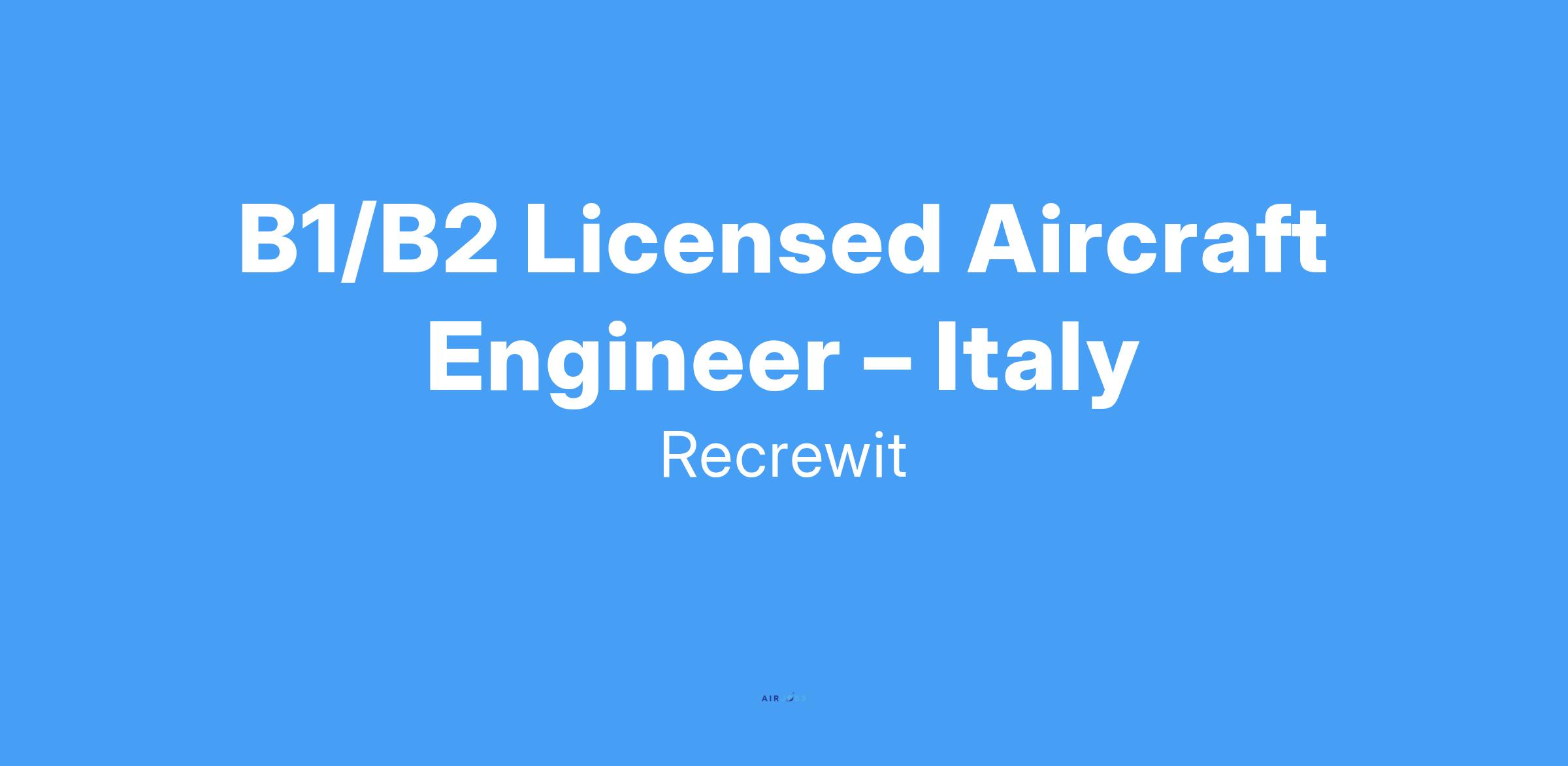 We are currently seeking experienced B1/B2 Licensed Aircraft Engineers to join our team in Italy for an exciting opportunity.