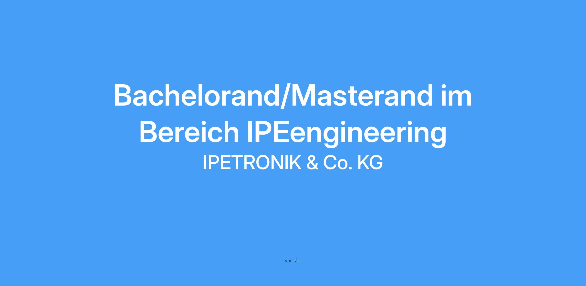 Zur Verstärkung unseres Geschäftsbereich IPEengineering suchen wir zum nächstmöglichen Zeitpunkt einen Bachelorand/Masterand im Bereich IPEengineering (m/w/d).