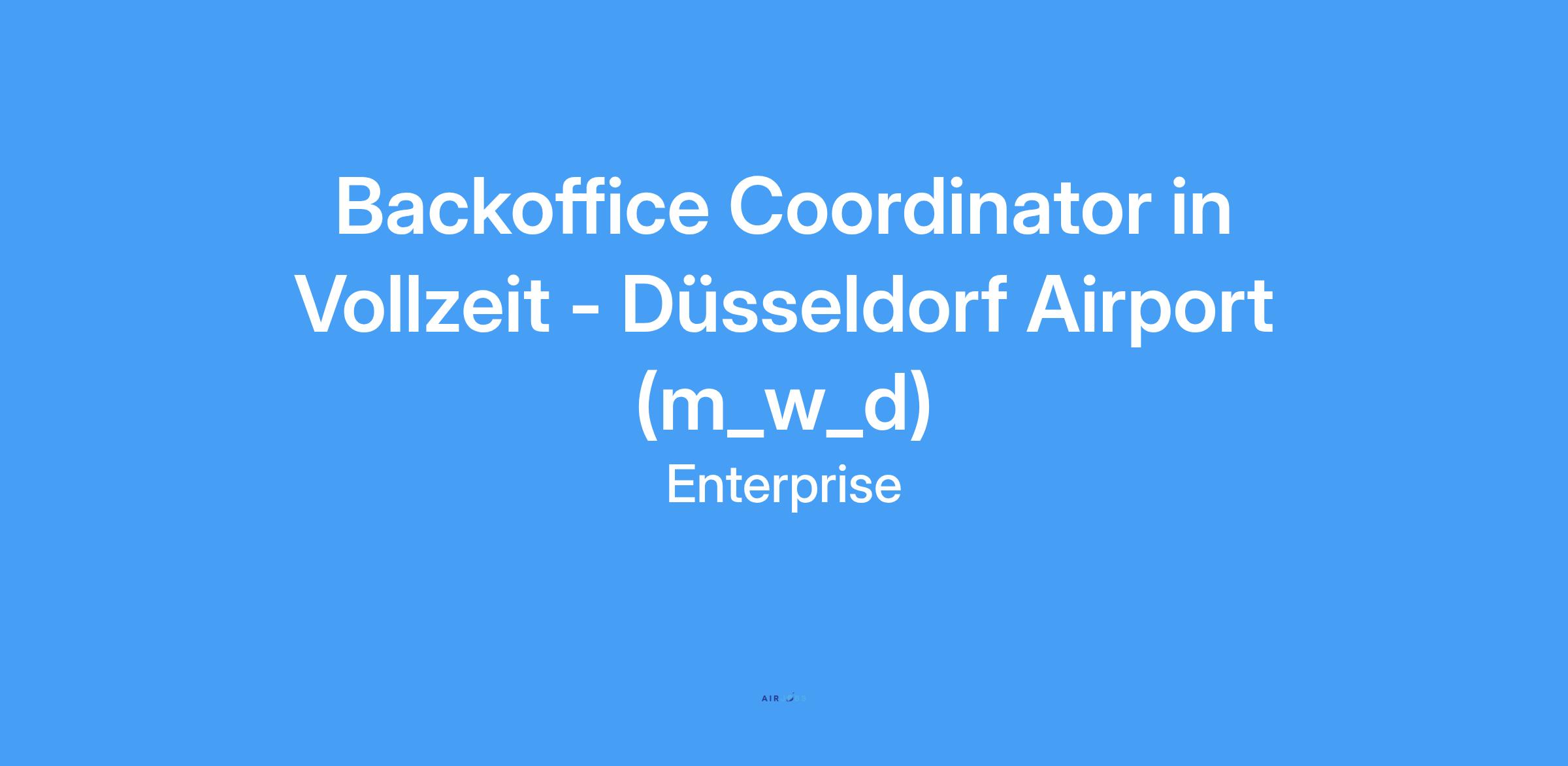 Starte als Backoffice Coordinator (m_w_d) für unsere Filiale am Düsseldorf Airport in Vollzeit.
