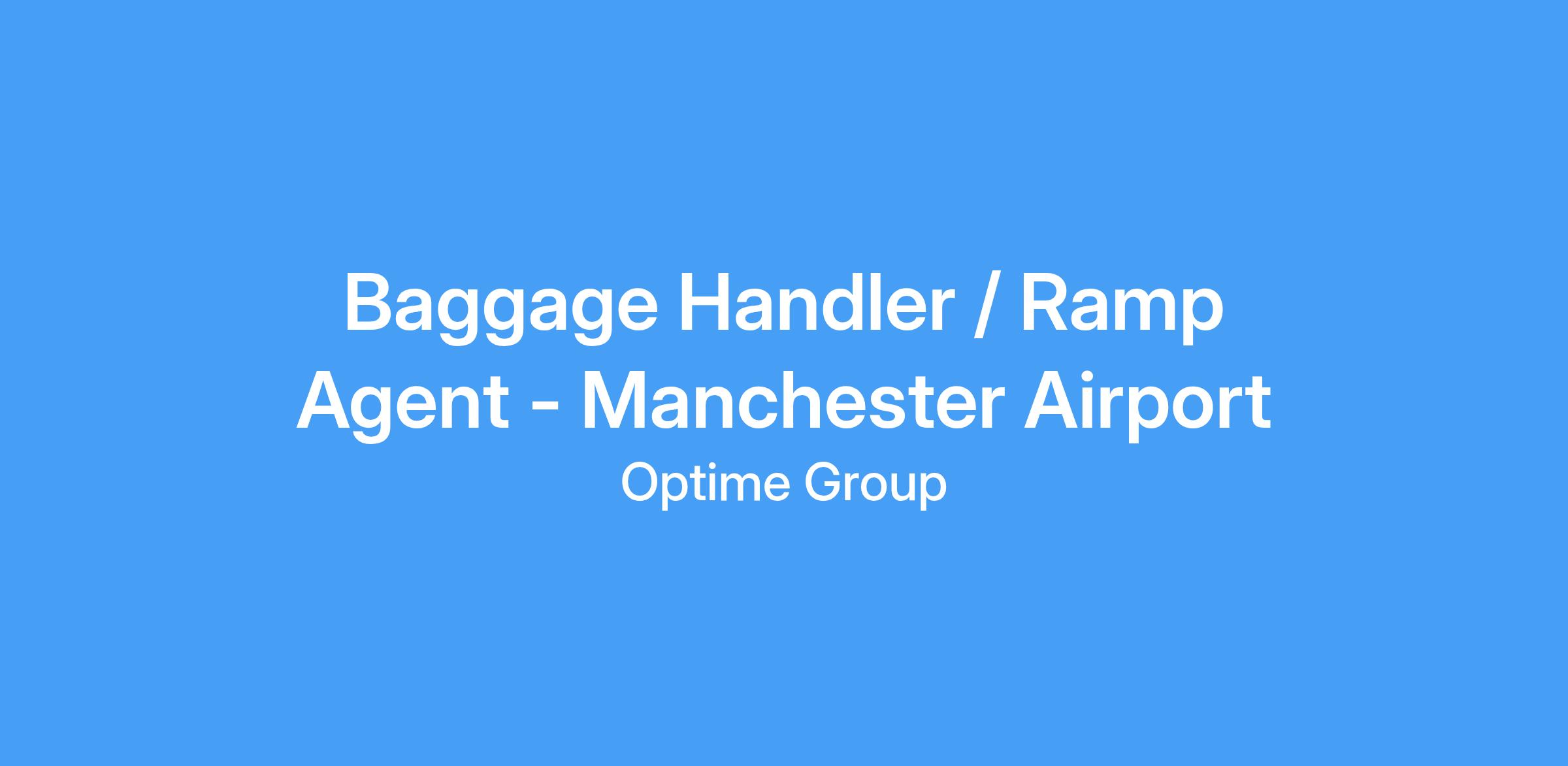 DescriptionAviation Recruitment experts Optime are searching for an experienced Ramp Agents / Baggage Handlers to join a well-respected and successful client at Manchester Airport. This job offers full time hours and overtime opportunities. This is a very enjoyable role with a great company providing fantastic conditions and facilities.