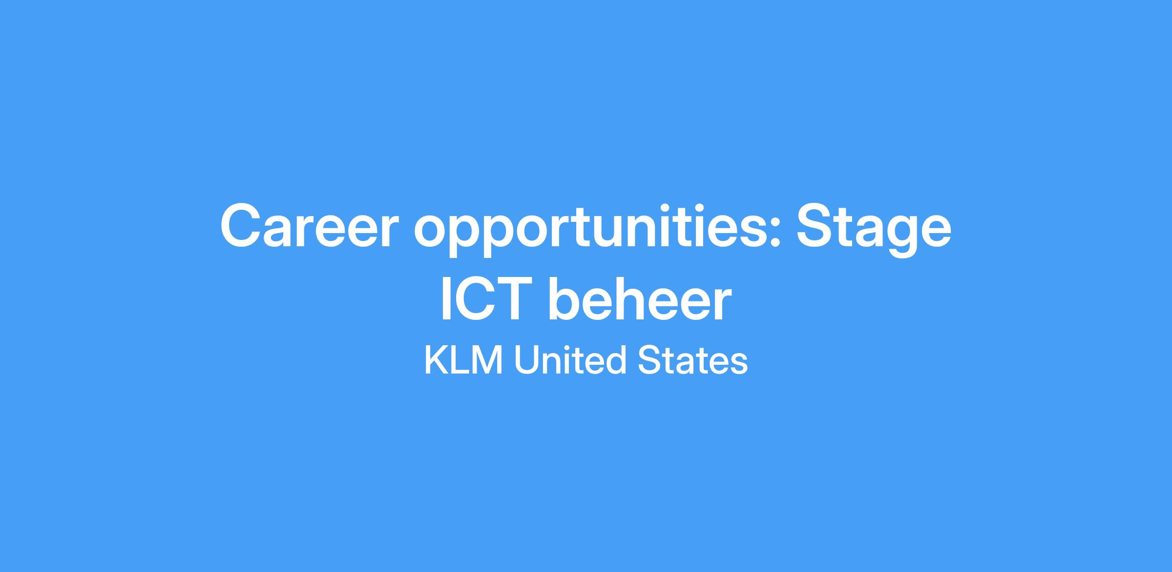 KLM biedt jou een zeer leerzame ervaring in een dynamische organisatie waarin jij een belangrijke rol gaat krijgen. Je kunt jezelf in deze stage, op persoonlijk en professioneel vlak, sterk ontwikkelen. Daarnaast biedt deze stage je de mogelijkheid om je netwerk op te bouwen, doordat je je met veel verschillende KLM'ers om tafel gaat zitten!