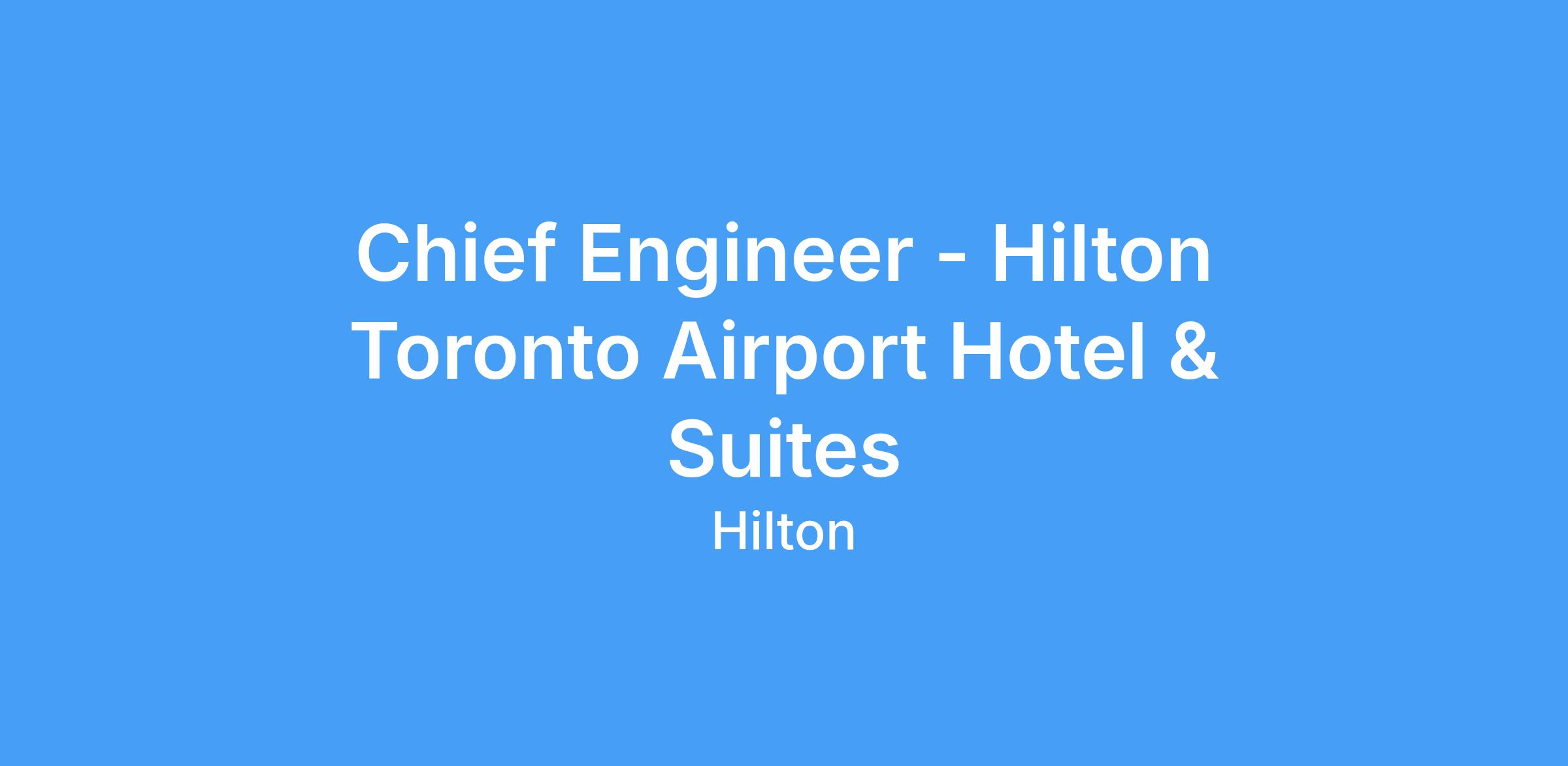 Due to a recent internal promotion, the Hilton Toronto Airport Hotel & Suites —a full-service, high-volume hotel in a fast-paced airport market—is seeking an accomplished Chief Engineer to lead all engineering and facilities operations.