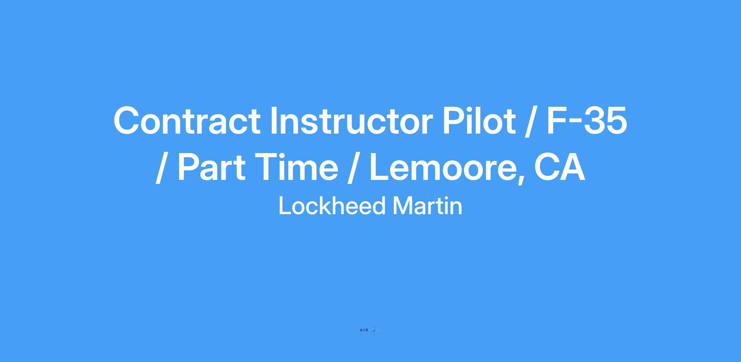 Position will provide F-35 Instructor Pilot and Subject Matter Expert (SME) instruction, academic training utilizing Electronic Mediated Lecture (EML) and/or Interactive Courseware (ICW) and instruct flight procedures in the Pilot Training Devices executing to the approved pilot training syllabus. The successful candidate will work closely with other members of the Lockheed Martin training team at NAS Lemoore to fulfill F-35 training objectives. The successful candidate will implement and support Lockheed Martin initiatives, programs, and policies, as directed. The candidate must maintain a Secret level security clearance and Special Access Program (SAP) access. An appropriate degree from an accredited college, or equivalent experience/combined education, with professional experience and specialized training commensurate with the assignment, is required.