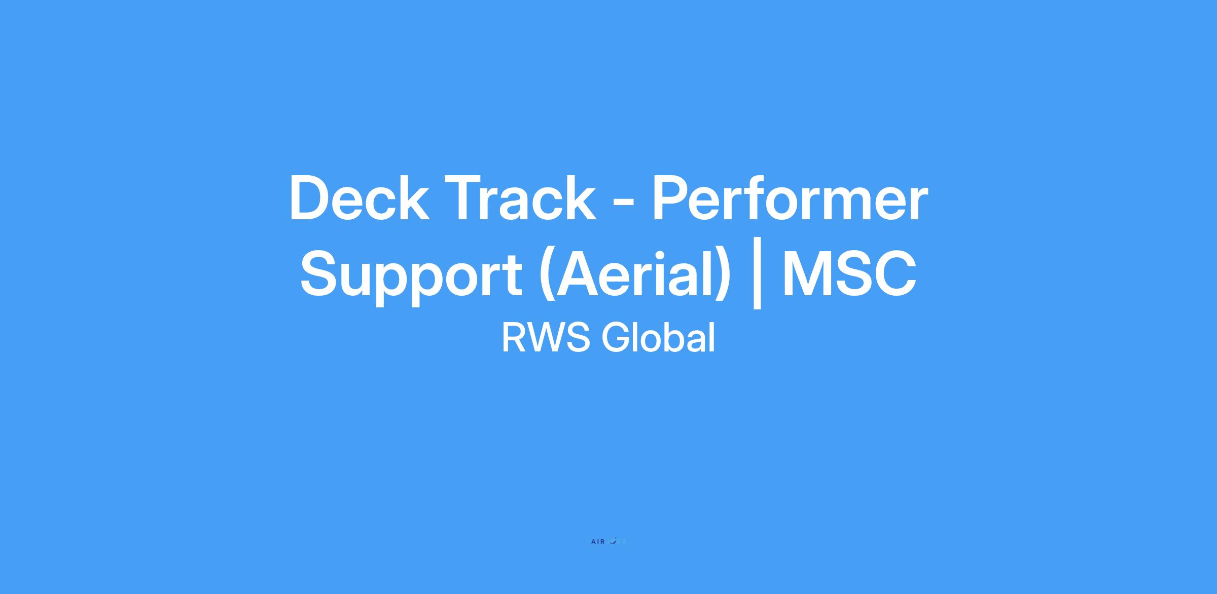 About the role…The Deck Track – Performer Support (Aerial) position will under the supervision of the Venue Manager. Willbe responsible for the safe setup, use and maintenance of all rigging equipment used by cast and crew withinthe venue, inspections and troubleshooting of all venue automation and aerial equipment, as well asparticipating in all sets/strikes in the venues.