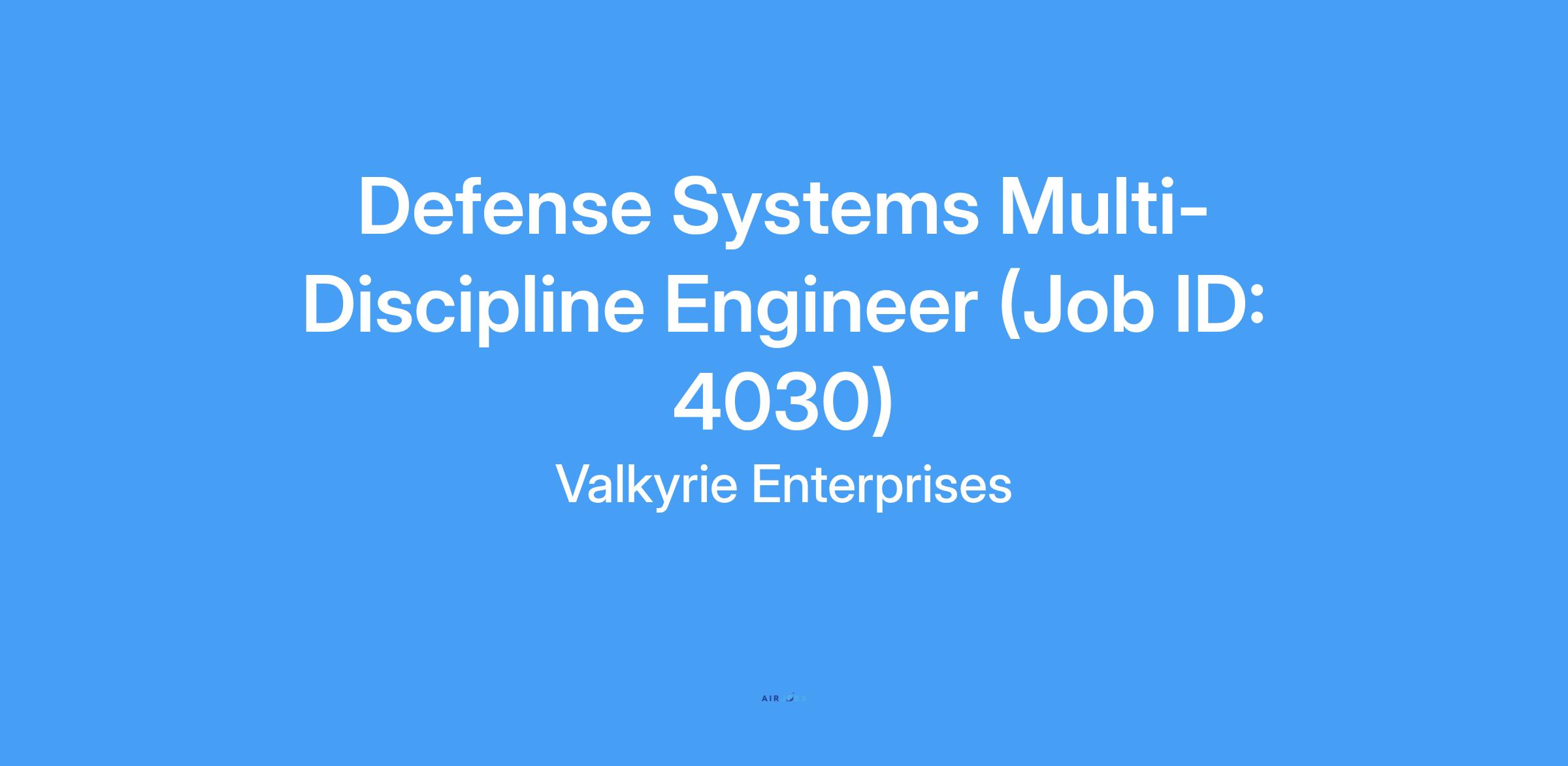 - Valkyrie Enterprises is looking for a Defense Systems Multi-Discipline Engineer in Huntsville, AL.