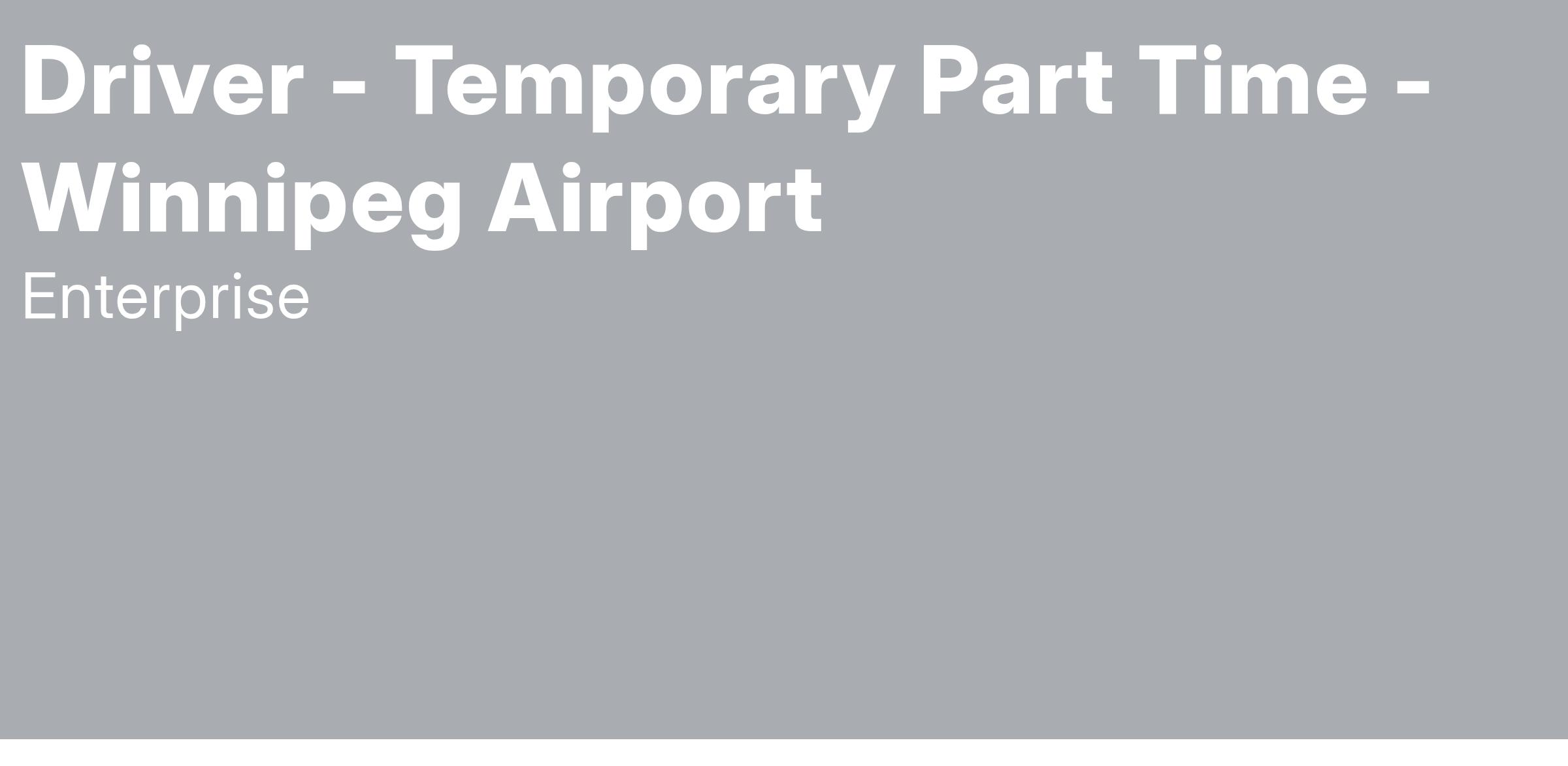 Enterprise Mobility is seeking a responsible, dedicated person to join our team as a Temporary Part Time Driver. This position pays $15.80 / hour and is located at 1965 WELLINGTON AVE WINNIPEG, MB R3H 1C2.