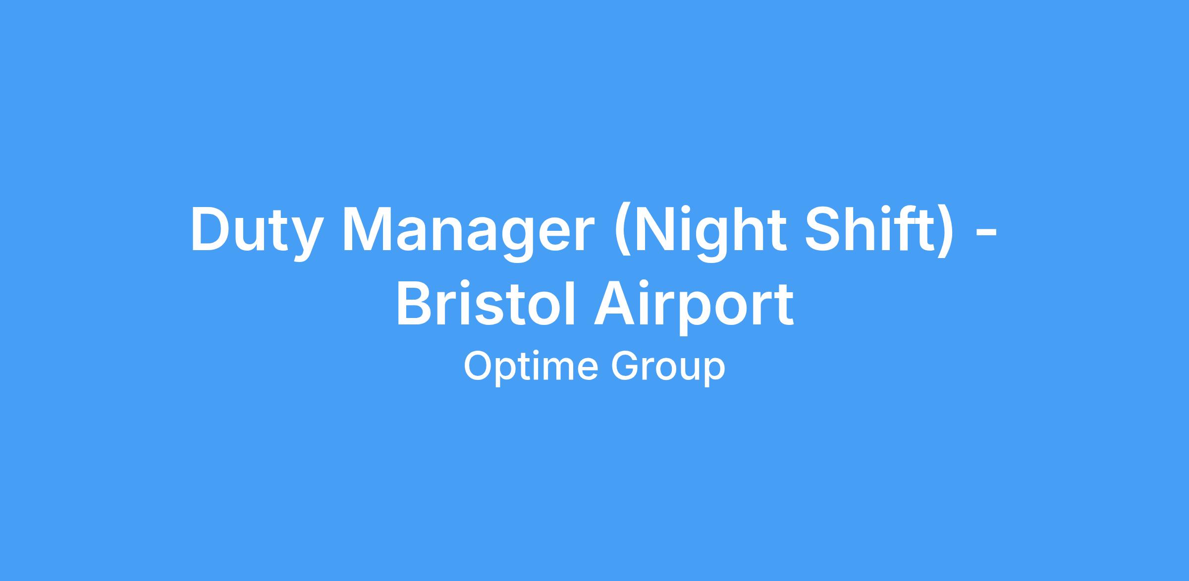 Aviation recruitment experts Optime Group are excited to be recruiting for a Duty Manager (Night Shift) to join a major aircraft cleaning operation at Bristol Airport.