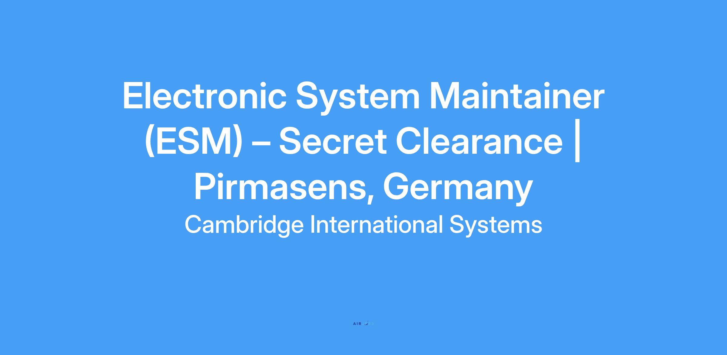 Electronic System Maintainer (ESM) – Secret Clearance | Pirmasens, Germany