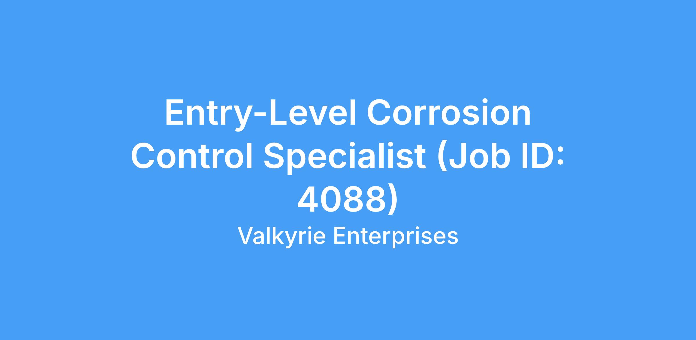 - Valkyrie Enterprises has an immediate need for multiple openings for a Corrosion Control Specialist in our Norfolk Virginia location who will be a key support in performing Corrosion Control on Naval and Commercial Ships.
