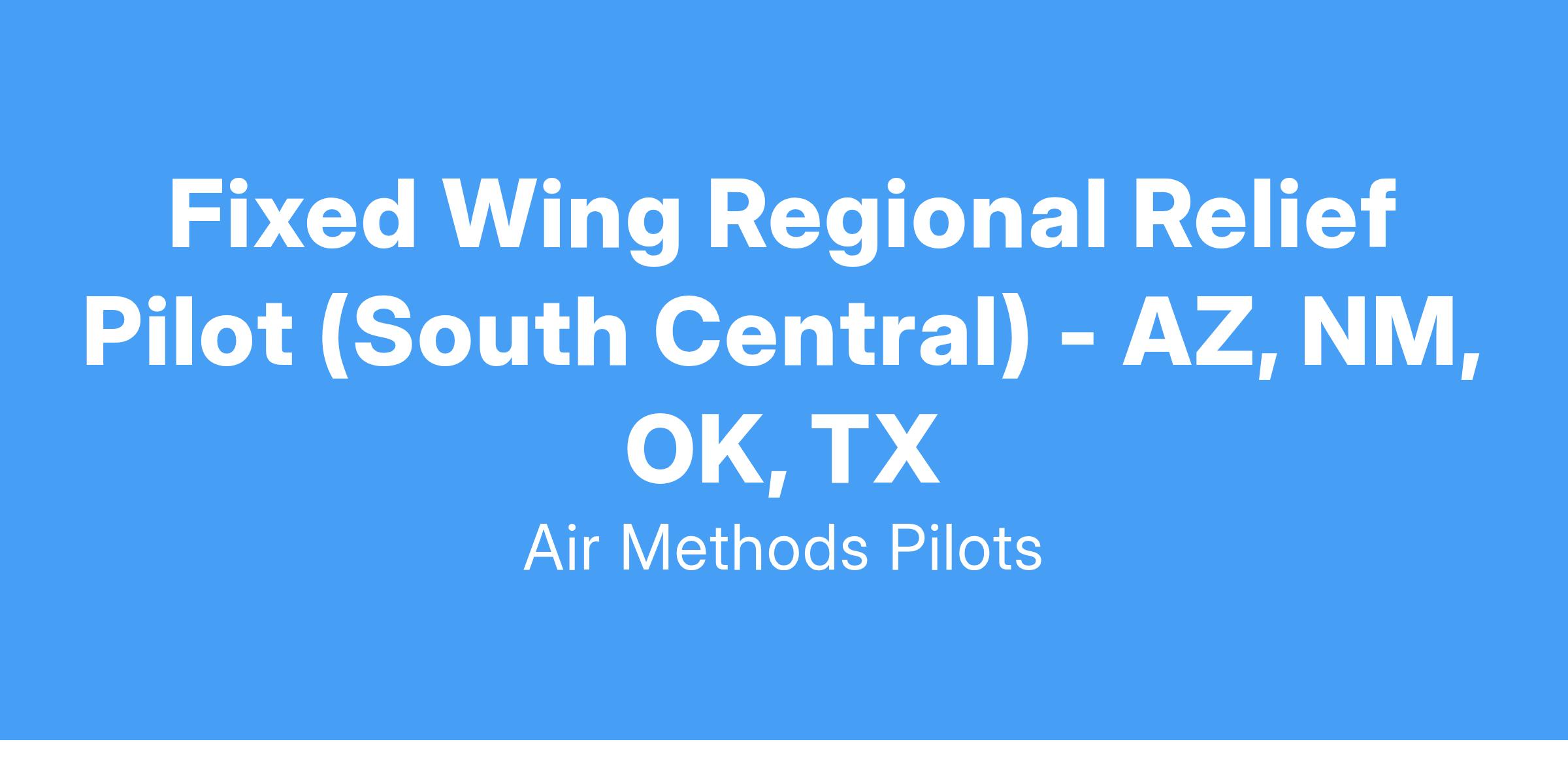 Pilots in this role will serve as a Regional Relief covering multiple bases in the South Central area (AZ, TX, OK, NM, MS, FL-Panhandle). Travel expenses, housing and/or hotel covered, plus a per-diem and travel pay applicable.