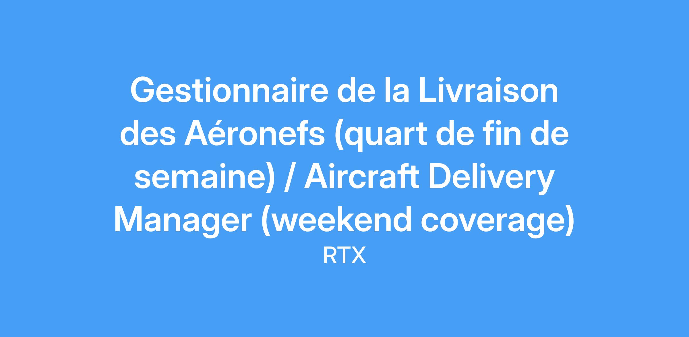 Titre du poste : Gestionnaire de la Livraison des Aéronefs (quart de fin de semaine)