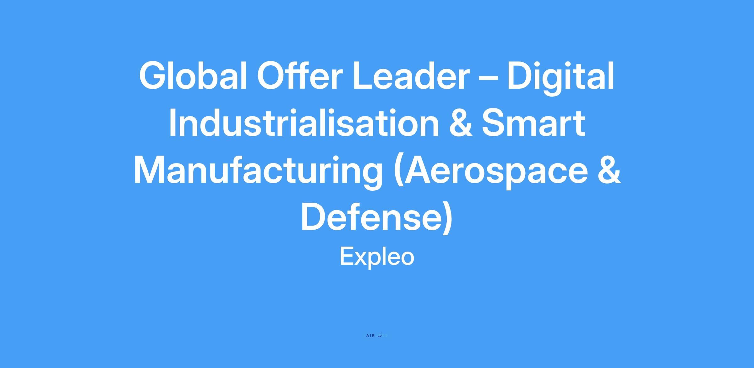 Are you ready to lead innovation in Smart Manufacturing and Digital Industrialisation? At Expleo, we’re seeking a visionary Global Offer Leader to drive our strategic offerings across Aerospace, Defense & Space. This is your chance to influence global transformation, work with top-tier clients, and lead cutting-edge initiatives in Industry 4.0 & 5.0.