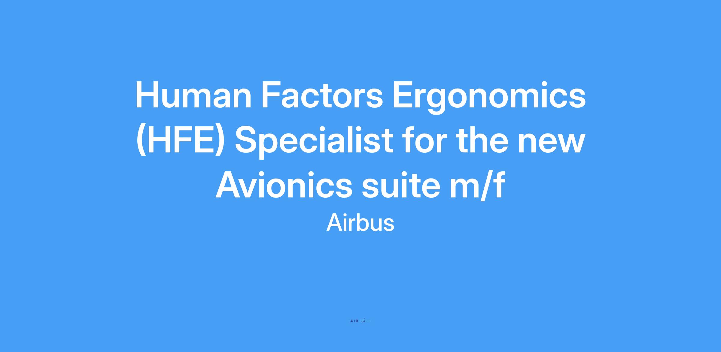 Master degree level (or equivalent) in the field of HFE ((Human Factors/Ergonomics)