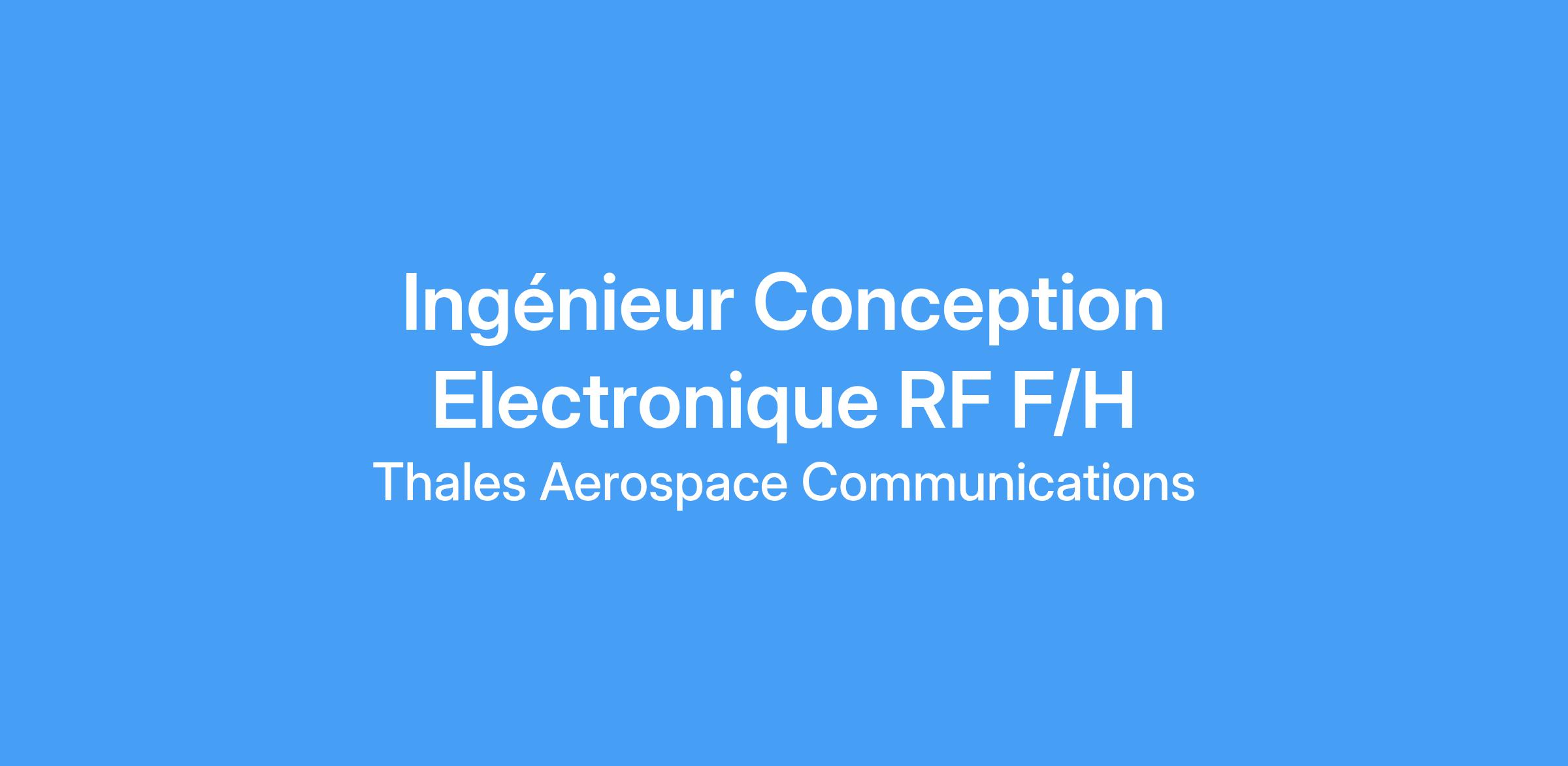 Expérience de plusieurs années en conception RF, idéalement appliquée aux télécommunications. Une expérience dans le secteur Aérospatial est un atout majeur.