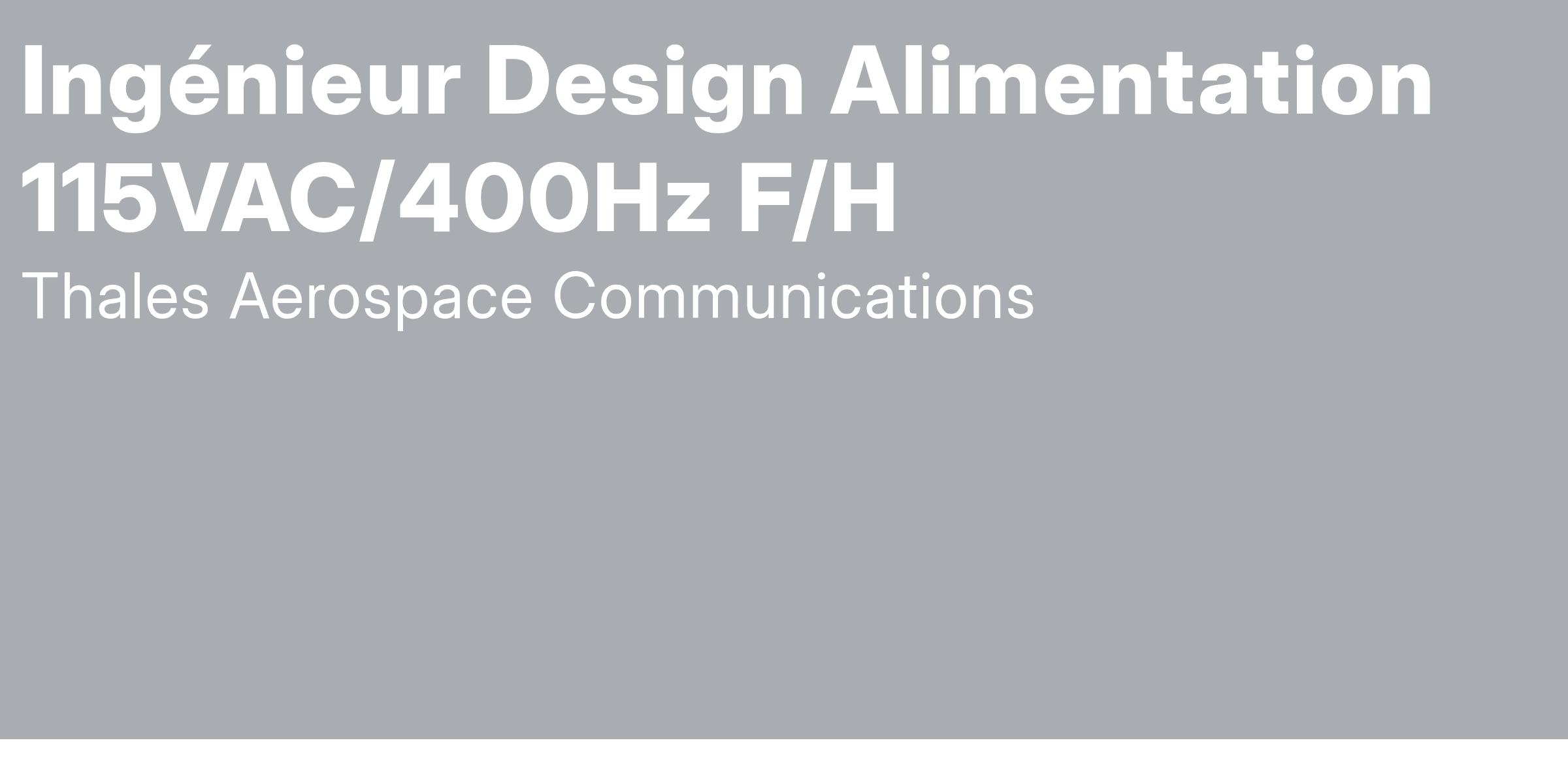 De formation supérieure technique (Bac+5, Ecole d'Ingénieur) en conception conversion d'énergie 115VAC/400Hz, vous avez déjà une expérience significative sur un poste similaire