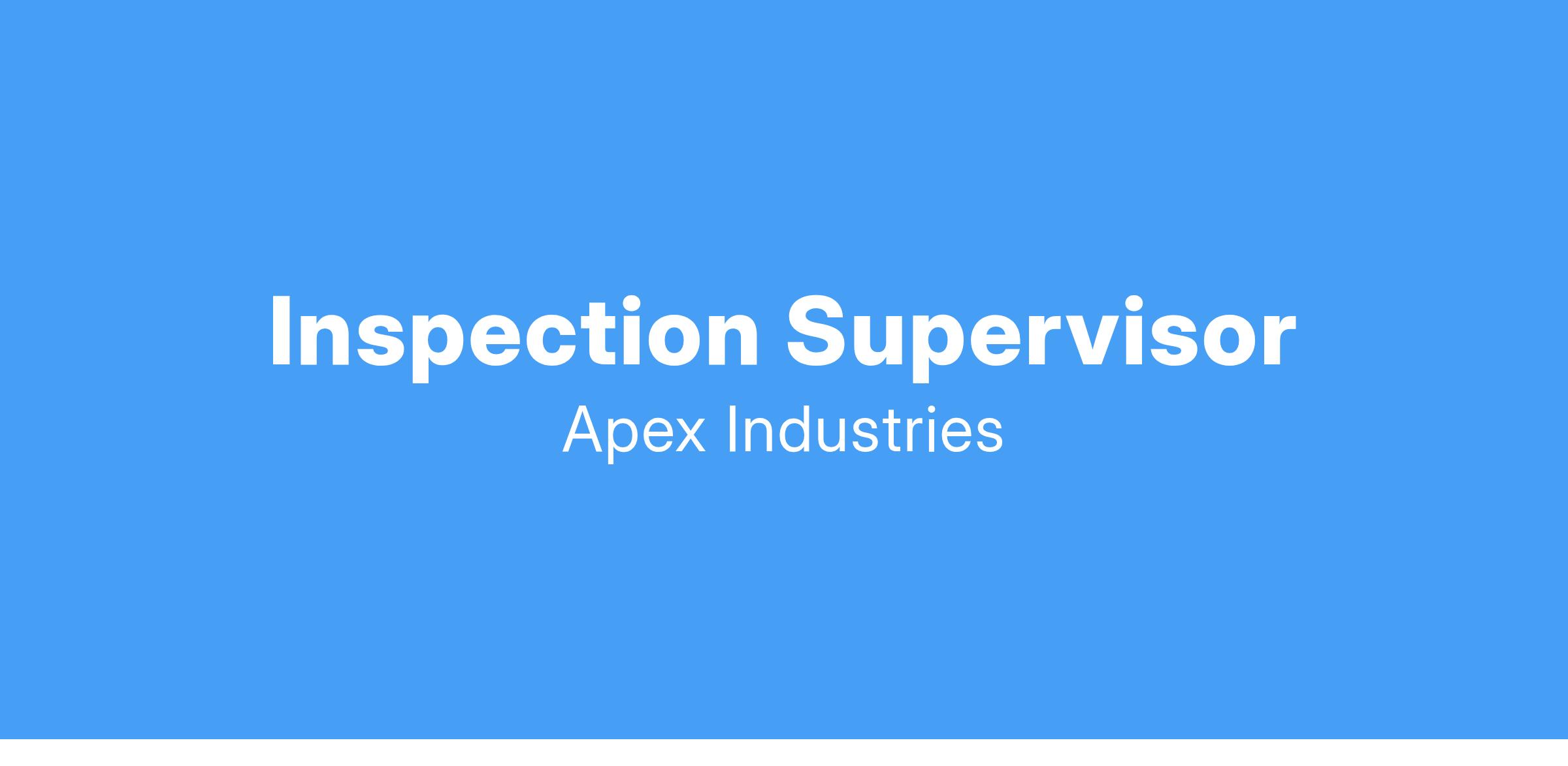 APEX is currently accepting applicants for an Inspection Supervisor within its Aerospace Component Manufacturing Group. This is a full-time, permanent position reporting to the Group Manager. The primary role of this position is to direct and coordinate all activities of the inspection department staff, plan flow of parts to maximize resources, ensure continuous improvements of existing and future production initiatives, and enhance customer quality in conjunction with improved profitability.