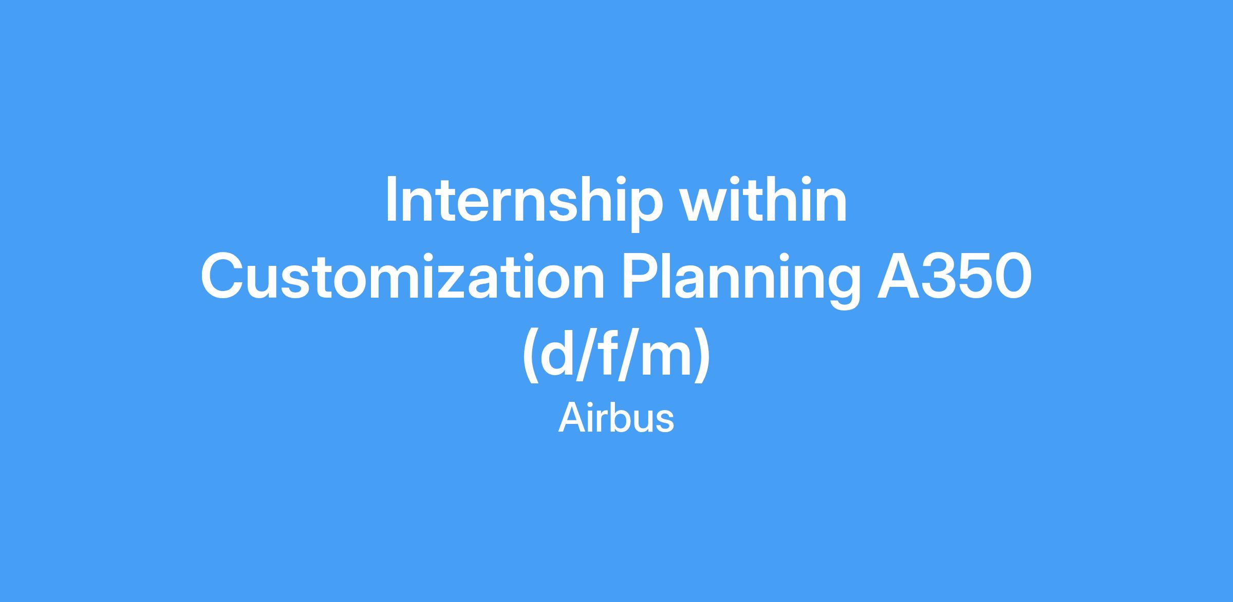 During your internship you will contribute to innovation of digital planning solutions and process improvements with the target to implement faster time to market results and simpler processes for customized Airbus A350. Interaction with all stakeholder / executing functions is required to optimize the define and development process of the customized Airbus A350 to customer satisfaction.