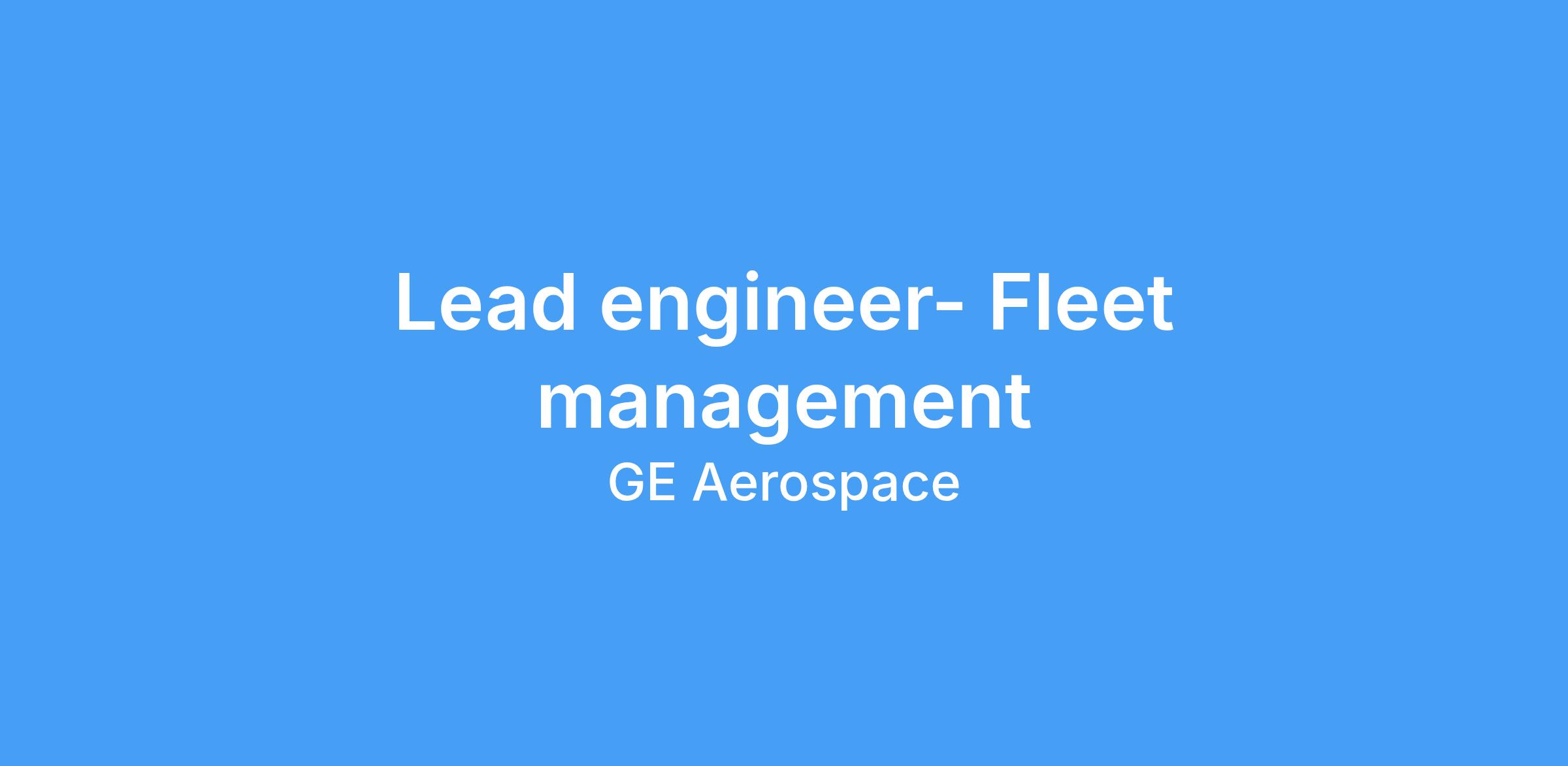 This role requires advanced experience in the Engineering/Technology & Fleet Management.