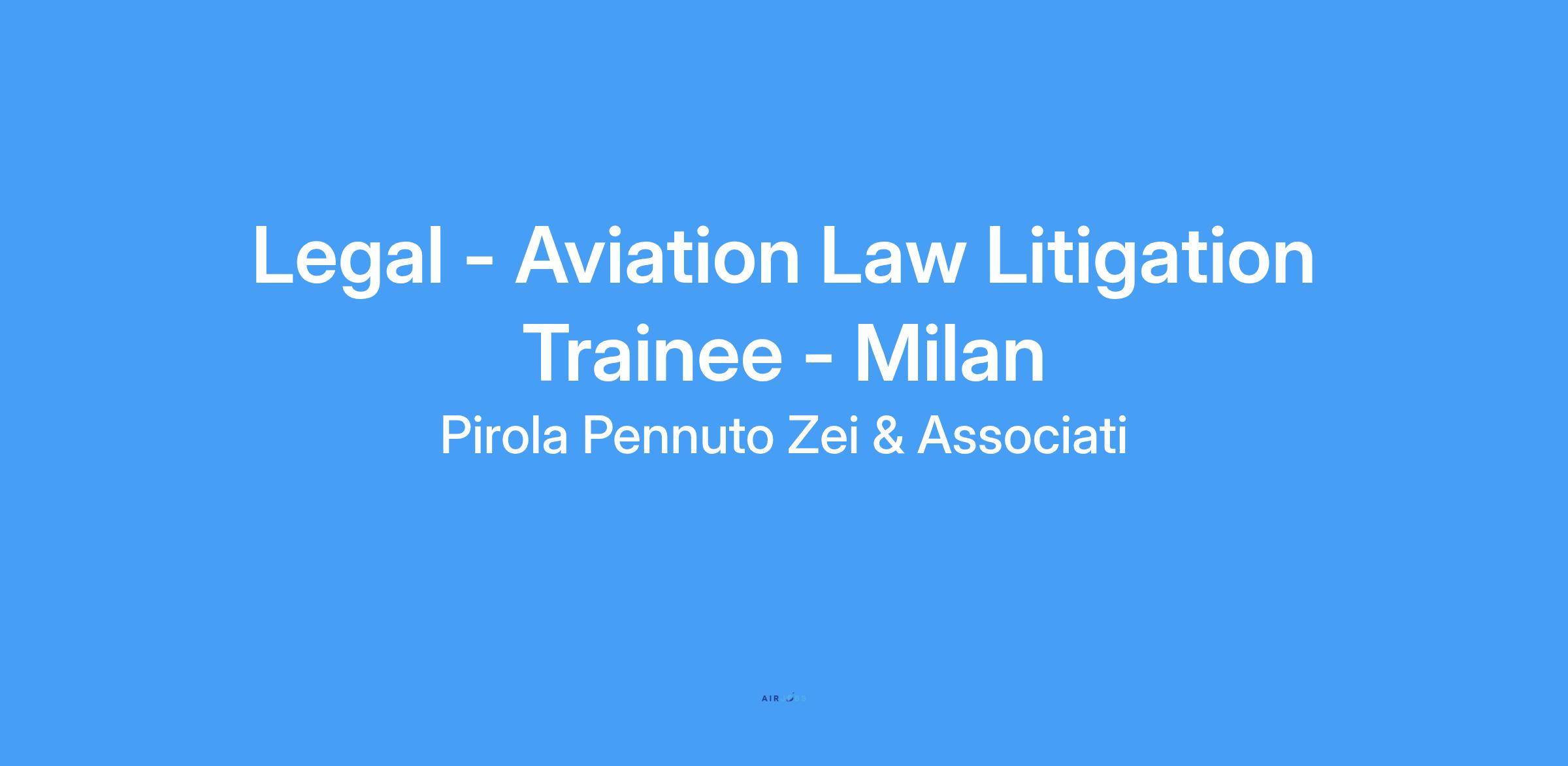 Pirola Pennuto Zei & Associati, a leading professional firm in the field of tax and legal consultancy, is looking for a trainee for its Milan office who is interested in litigation in the field of aviation law.