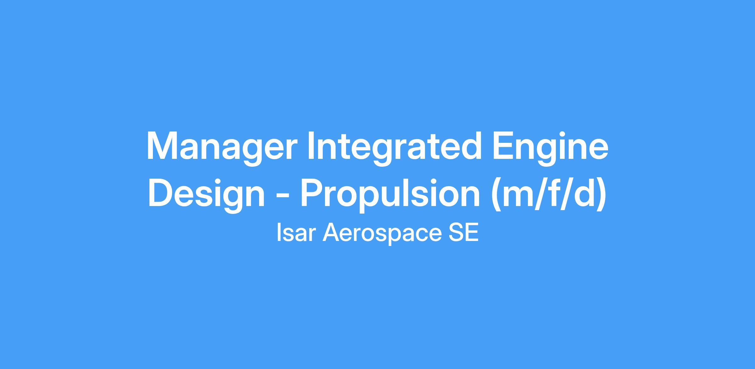 As Manager of Integrated Engine Design – Propulsion, you will lead the design of engine structures and piping, oversee structural analysis across propulsion systems, manage hardware budgets, and coordinate with suppliers to ensure quality and timely delivery.