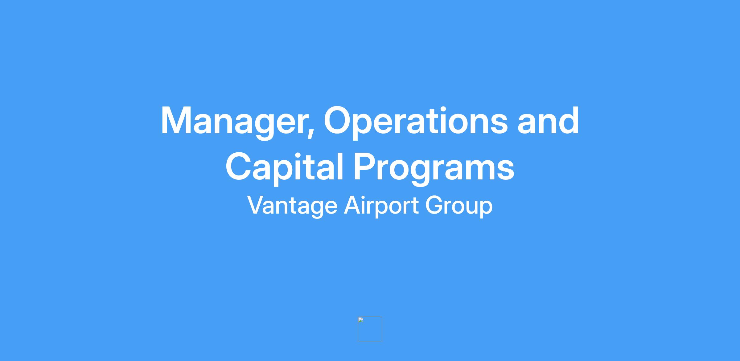 The Manager, Operations and Capital Programs, will work closely with the Vantage Operations team to ensure efficiency and effectiveness of network airport programs and operations. Reporting to the Director, Operations, this role will provide operation and project support to the Vantage network.