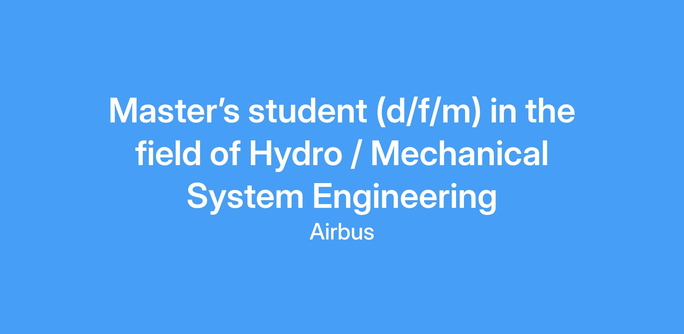 Enrolled full-time student (d/f/m) in the area of Aircraft System Engineering, Hydro / Mechanical Engineering, Materials Engineering or an equivalent field of study