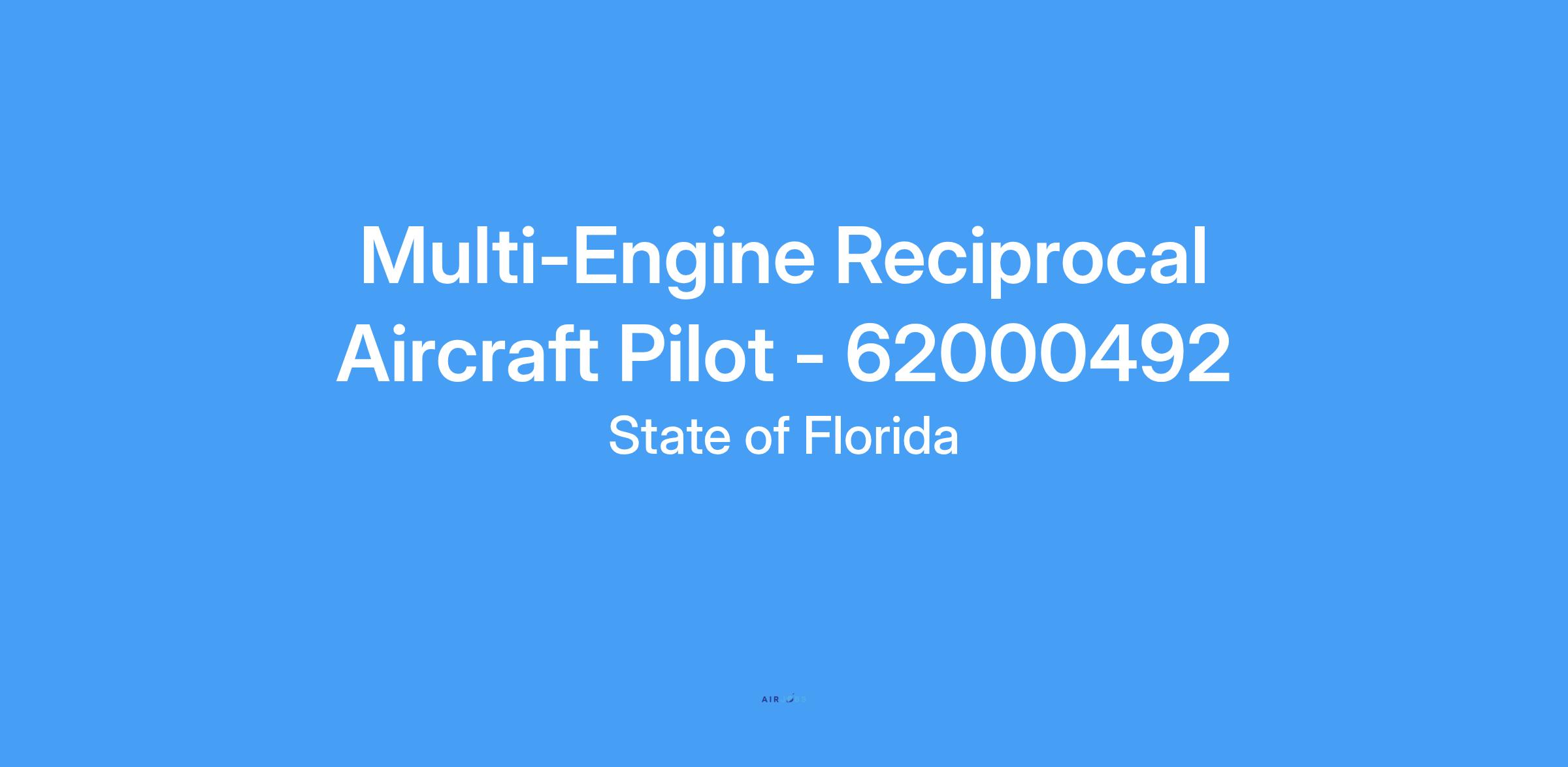 Working Title: MULTI-ENGINE RECIPROCAL AIRCRAFT PILOT - 62000492