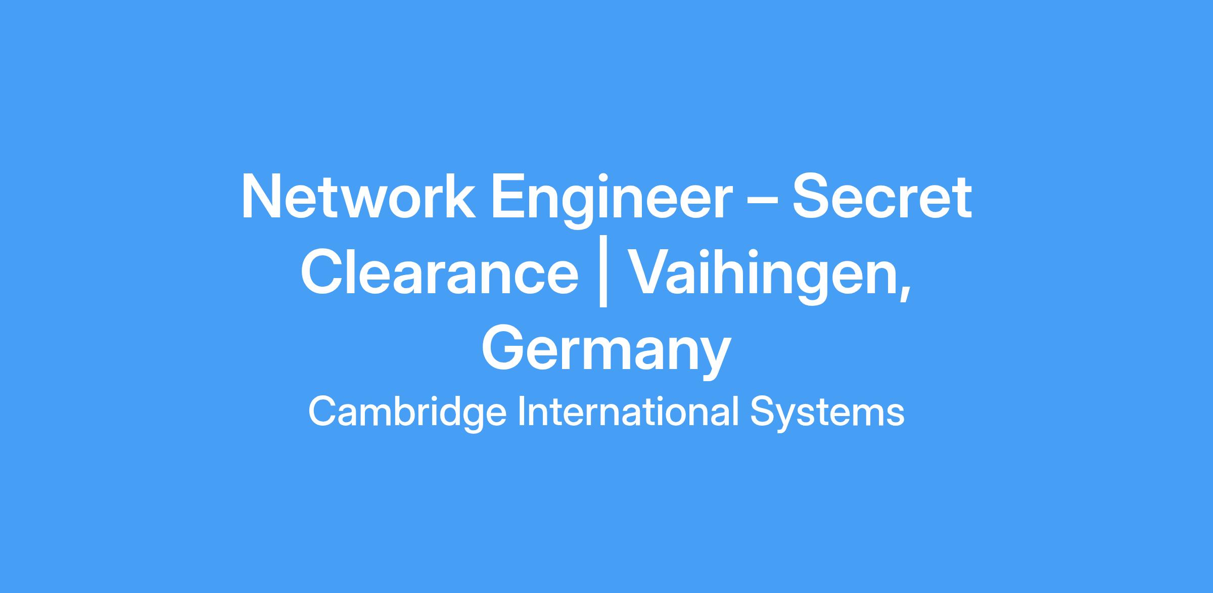 Network Engineer – Secret Clearance | Vaihingen, Germany