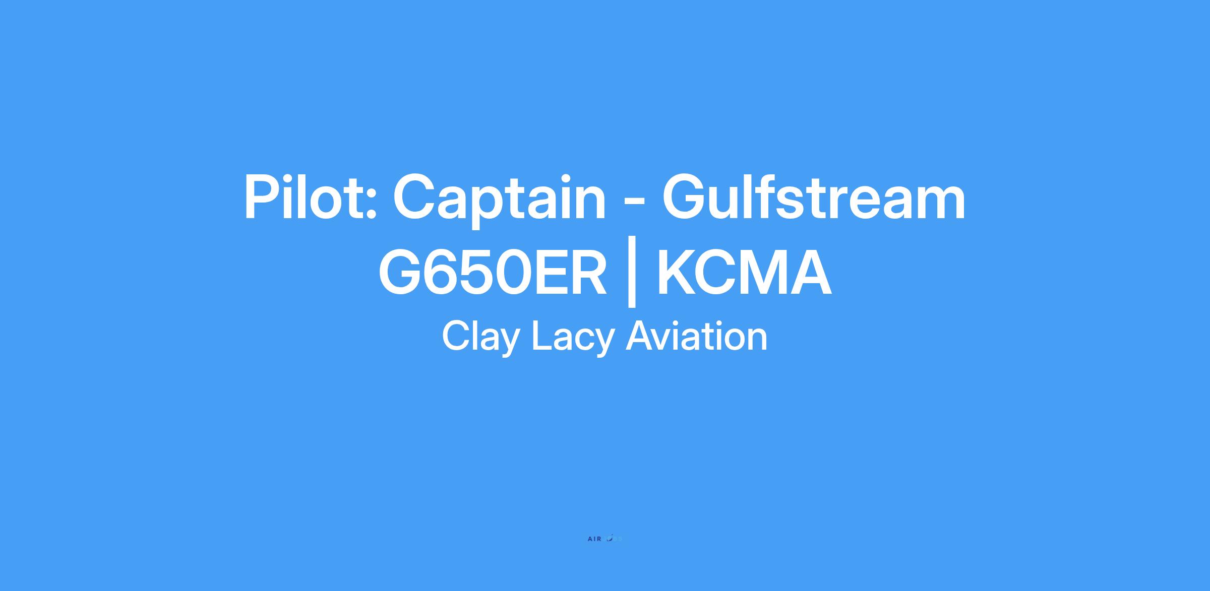 We are currently seeking a Captain for our Part 91 Gulfstream G650ER based in Camarillo, CA.