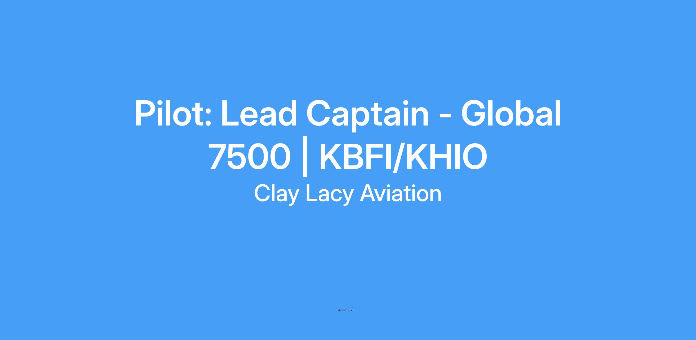 We are currently seeking a Lead Captain for our Pt. 91 Global 7500 based in KHIO/KBFI.
