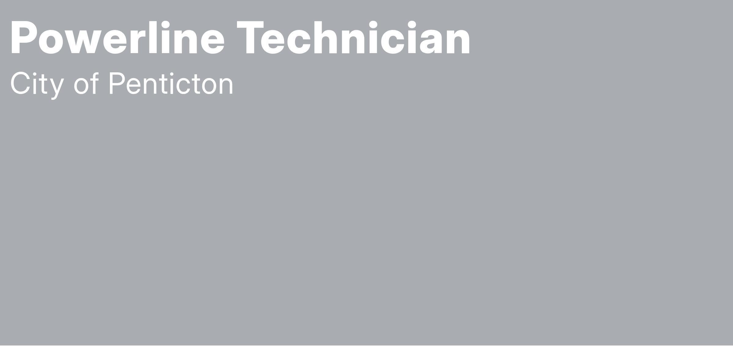 The City of Penticton is looking to fill the full-time permanent position of Powerline Technician in our Energy & Environment Department. The Energy & Environment Department is responsible for overseeing the operations, maintenance and ongoing improvement of the City of Penticton's distribution electrical systems, as well as climate action work. This department manages all electric services from infrastructure and electrical distribution to metering, traffic signals and street lighting.