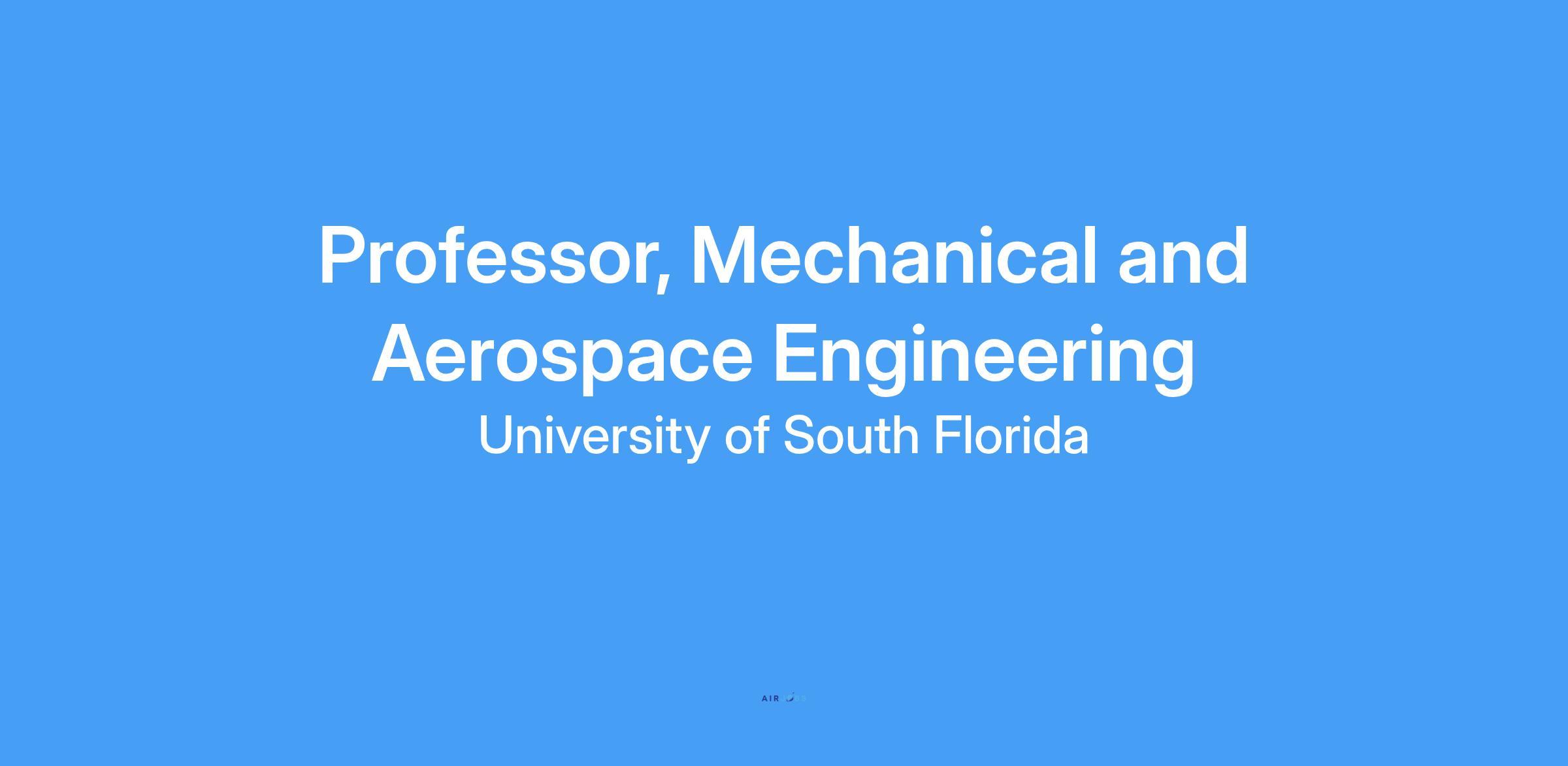 The Department of Mechanical and Aerospace Engineering at the University of South Florida invites applications for tenured/tenure-track faculty positions in Mechanical and Aerospace Engineering. While outstanding candidates from all areas of Mechanical and Aerospace Engineering are encouraged to apply, particular consideration will be given to applicants with expertise in one or more of the following areas: (1) Computational Supersonic and Hypersonic Flows, (2) AI, Autonomy, and Robotics, (3) Drones and Urban Air Mobility, (4) Advanced Manufacturing, (5) Aerospace Materials, and (6) Energy Systems. Applicants specializing in materials science without a clear, strong connection to aerospace applications are discouraged from applying.