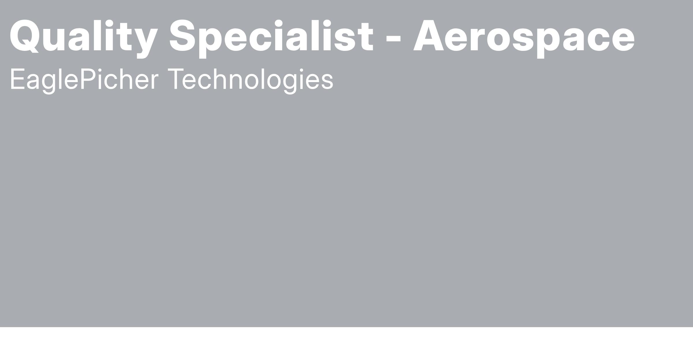 The Quality Specialist position will support Quality functions in all areas of Quality represented by EaglePicher for AS9100 and ISO 9001. Position will work with minimal supervision and within company policies and procedures. Responsibilities will include: assist in preparation and review of documentation related to receiving inspection; in process inspections for assembly of hardware and testing processes; accurately review Quality related data for Operations to verify compliance to specifications; resolve problems or non-compliances and provide accurate documentation of problem resolutions to supervisors of Quality, Engineering and Operations; support onsite customer activities; interface with Operations for metrics related to First-time Quality; lead root cause and corrective action activities for problem resolution of non-compliances. The Quality Specialist should have working knowledge of AS9100 and ISO 9001 standards for quality control.
