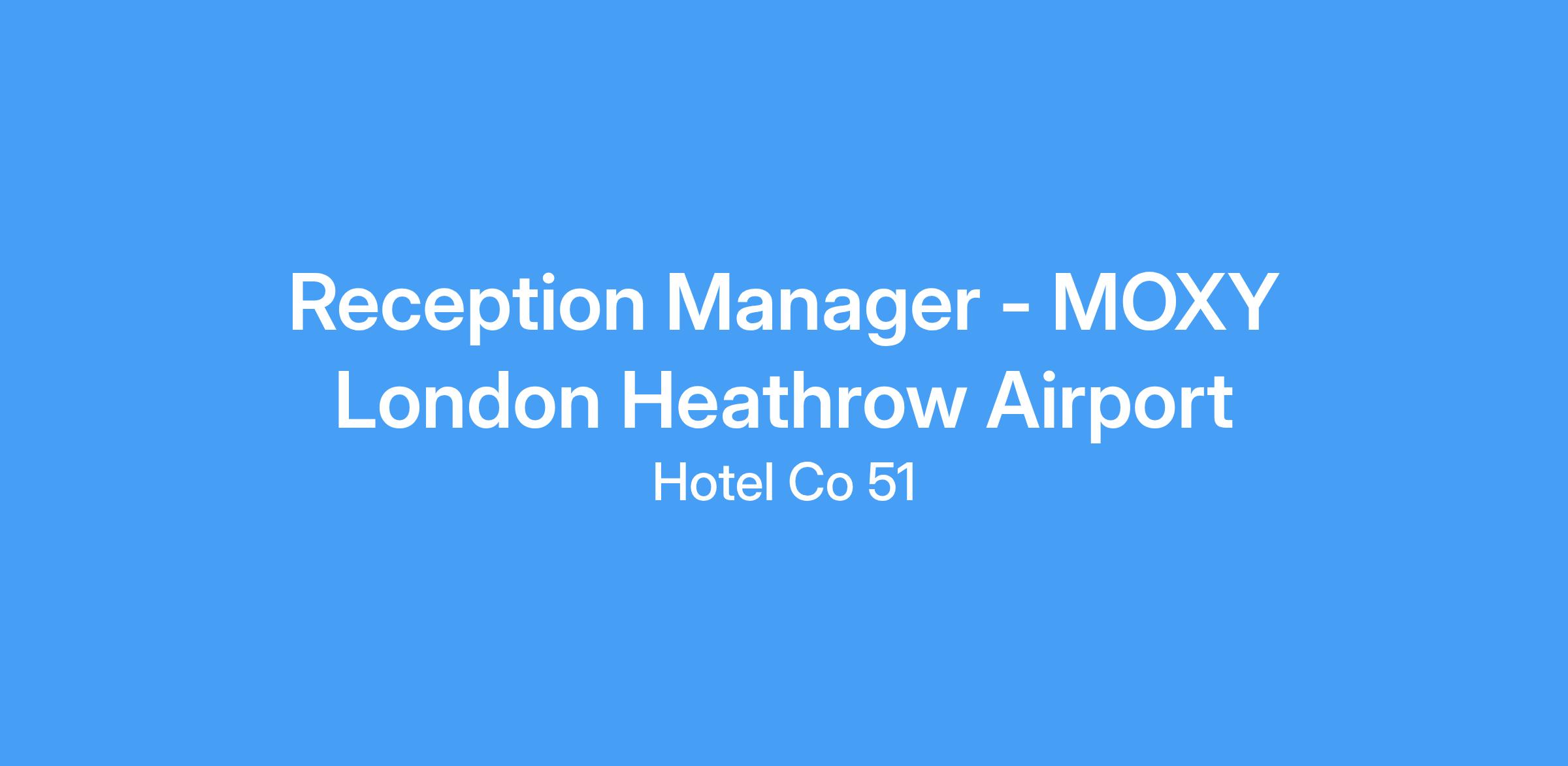 Reception Manager - MOXY London Heathrow Airport