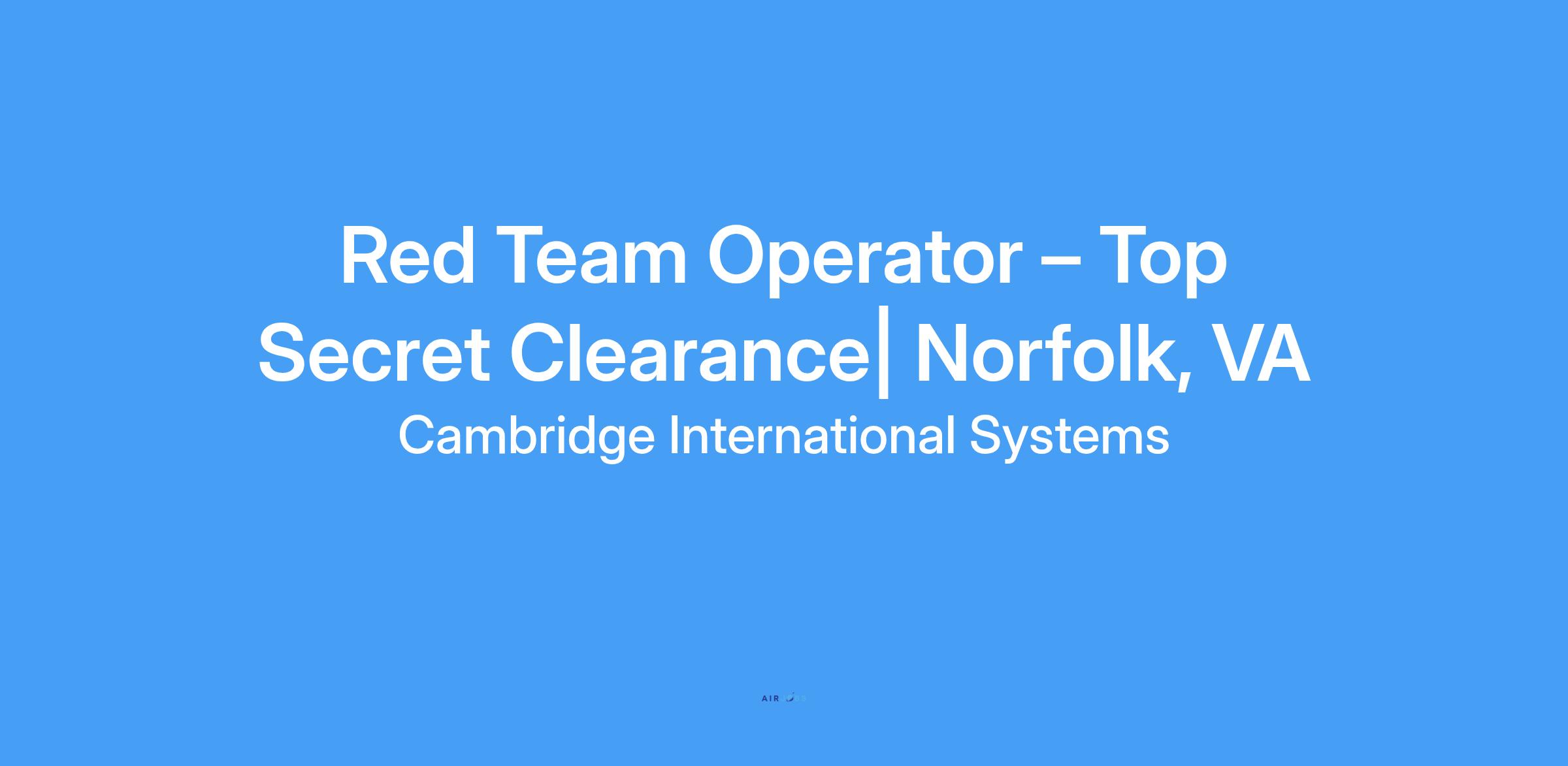 Red Team Operator – Top Secret Clearance | Norfolk, VA