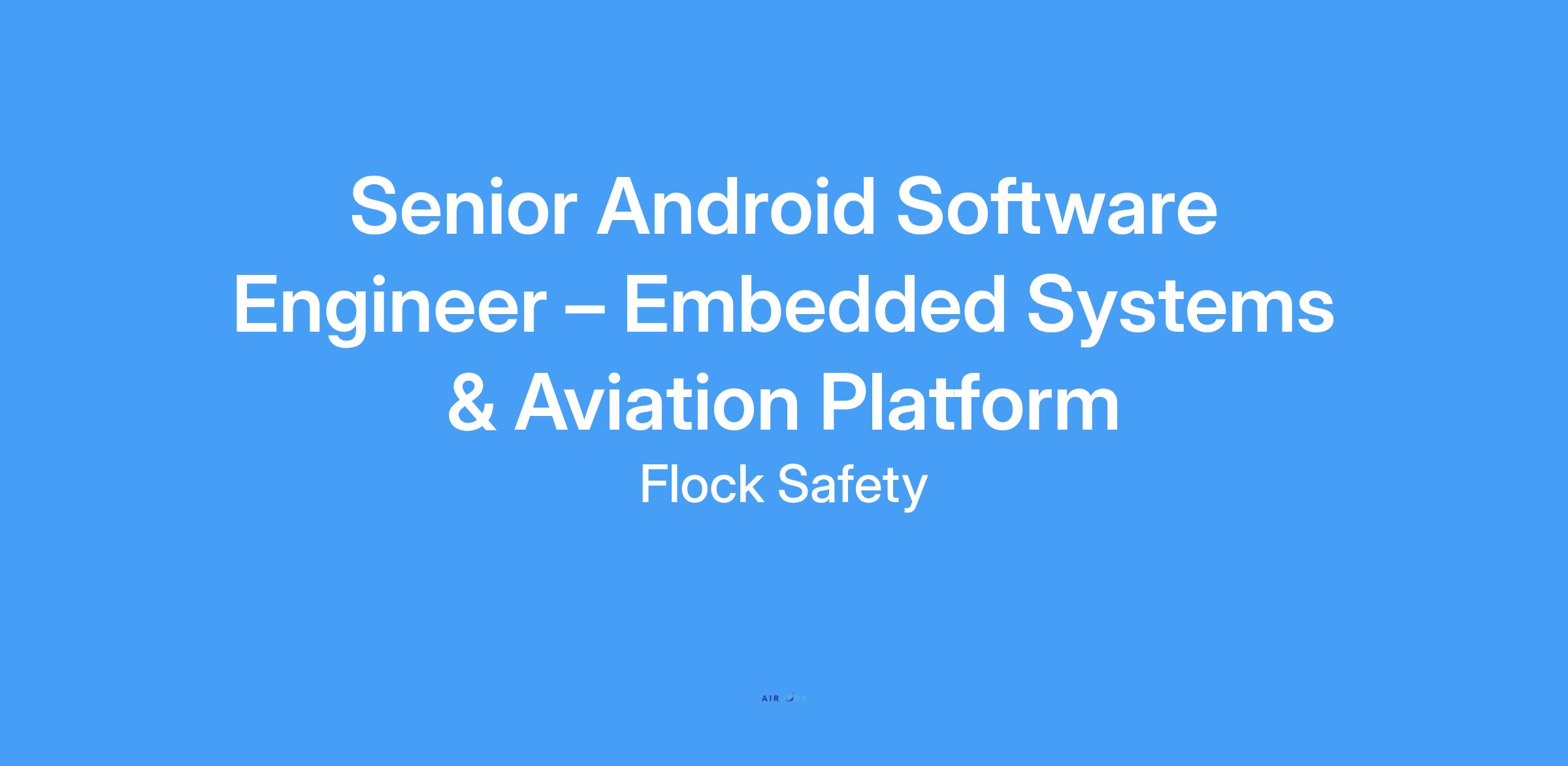 As a Senior Software Engineer, Android Apps at Flock Safety, you’ll play a key role in developing the Android applications that power our expanding aviation platform for first responders. Flock’s internally developed hardware portfolio is growing to include a range of drone-related products, and we’re looking for engineers ready to shape the software at the highest layer of the embedded Android stack.