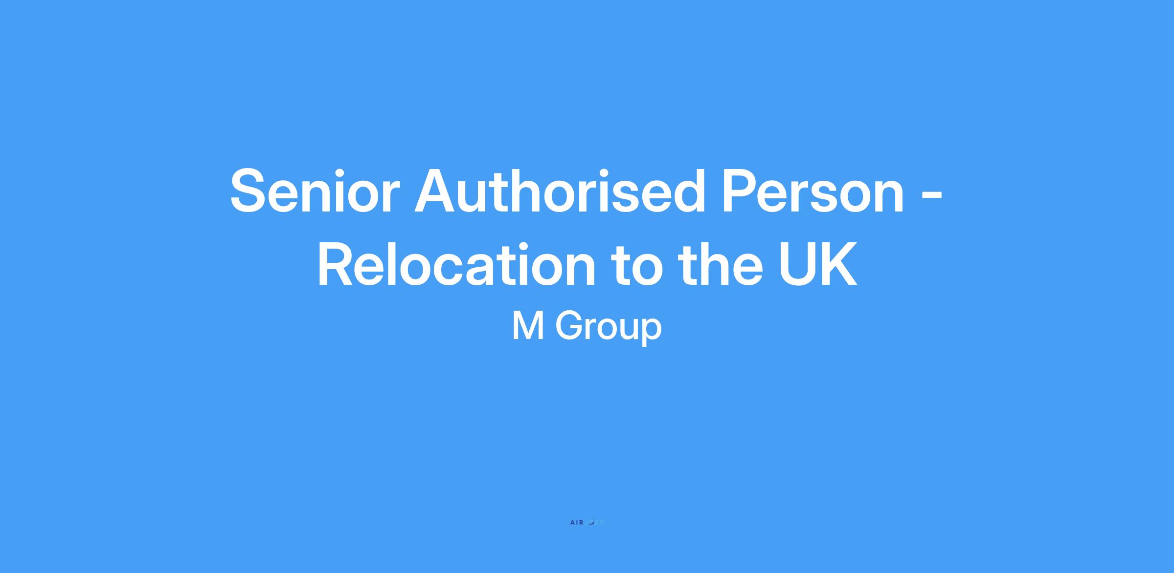 Senior Authorised Person - Relocation to the UK
