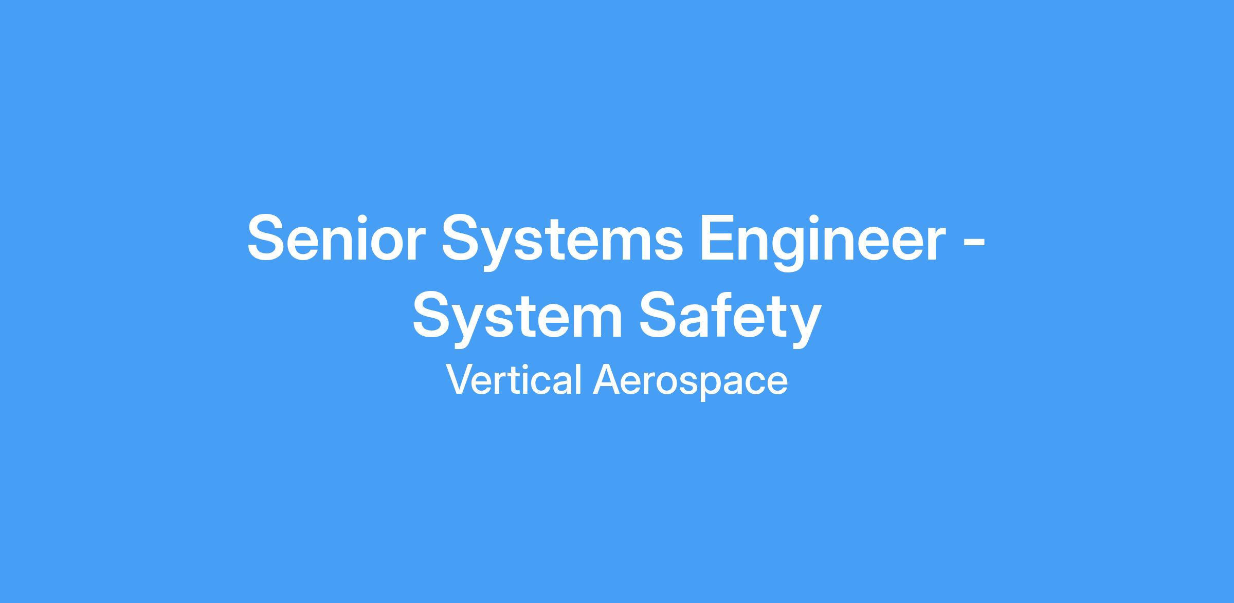 As a Senior Systems Engineer - System Safety, you’ll join a collaborative, multidisciplinary environment where safety is at the heart of everything we do. You’ll work within the Powertrain Squad, partnering closely with experts in propulsion, flight controls, power distribution, and airworthiness, as well as external suppliers. This is a fast-paced, innovative setting where traditional aerospace processes are being redefined to meet the challenges of electric aviation.