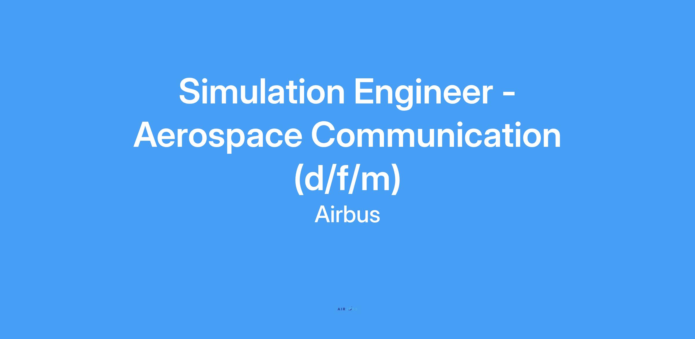 For Airbus Defence & Space in Taufkirchen we are looking for a Simulation Engineer - Aerospace Communication (d/f/m)