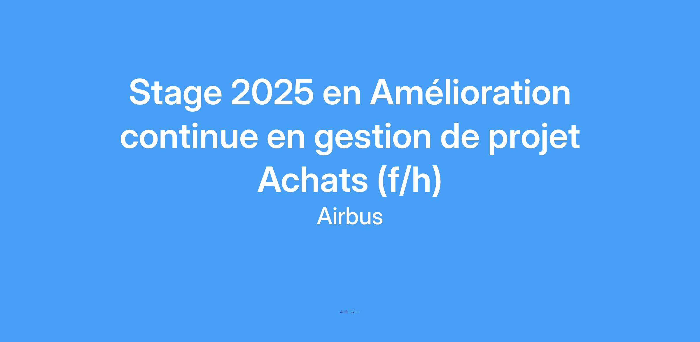 Une offre de stage intitulée « Stage 2026 Airbus - stage en Amélioration continue Gestion de projet Achats, Dept PROCUREMENT (f/h) (F/H) » vient de s'ouvrir au sein de Procurement Operations du Single Aisle « A320 Monocouloir » sur son site de Toulouse-Saint-Martin .