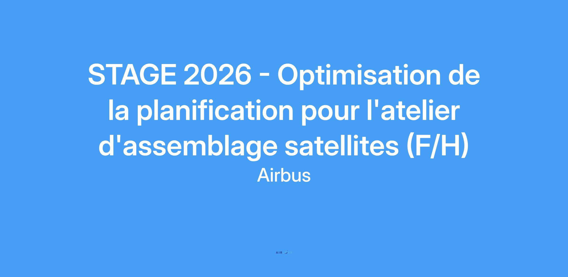Une offre de stage en « Optimisation de la planification pour l'atelier d'assemblage satellites (f/h) » vient de s'ouvrir au sein d'Airbus Defence and Space sur son site de Toulouse - Astrolabe.